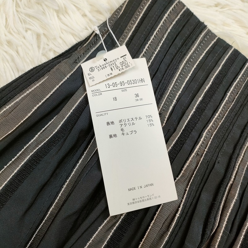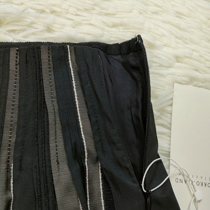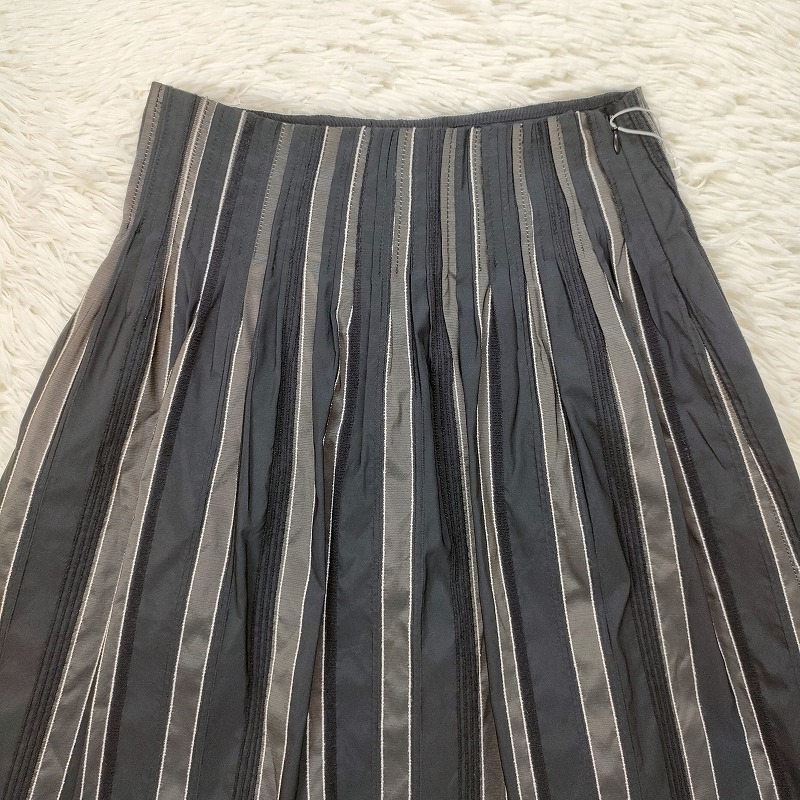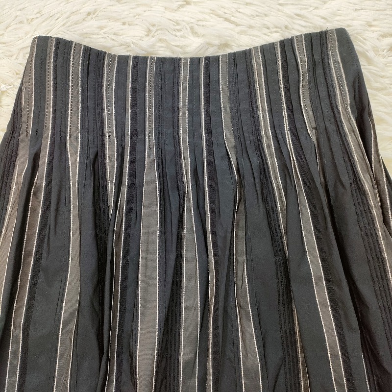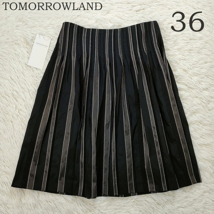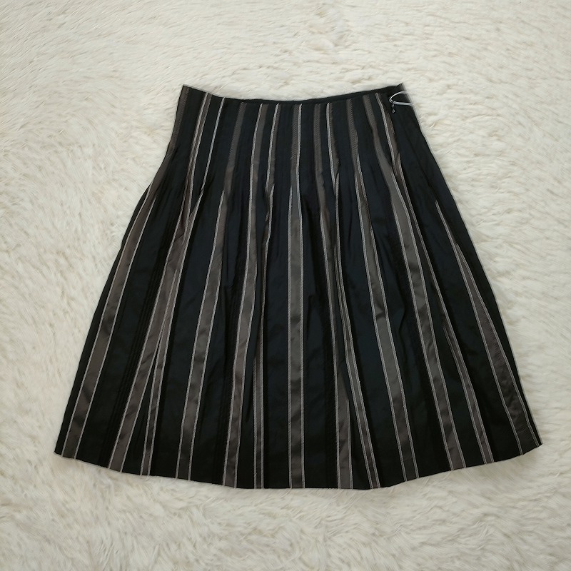 タグ付き未使用 TOMORROWLAND トゥモローランド Aライン スカート サイズ36 ストライプ ブラック×チャコール 日本製 ¥19950 collection