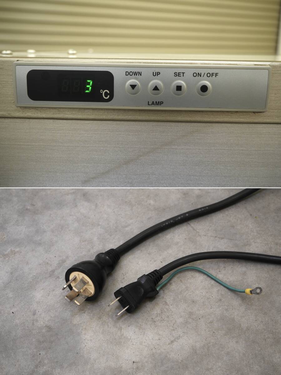 | この度は、ご覧いただきありがとうございます。 zyt2481ジ『引取限定』福島工業 業務用 冷蔵ショーケース MCU-45GKPOR 多段オープン 三相200V+単相100V 簡易動作確認済 現状品 70918-03 の投稿です。 --------------------------------------------------------------- 【お品物の詳細】 メーカー:福島工業 商品名:業務用 冷蔵ショーケース 形名:MCU-45GKPOR 製造番号:3J-10189 製造年:2013年 定格電圧:単相100V + 三相200V 定格周波数:50/60Hz 有効内容積:525L ※メーカー発表値 サイズ:幅 116.5cm 奥行 60cm 高さ 190cm(キャスター式) ※すべて素人採寸 製品質量:225kg ※ラベル記載値 付属品:なし ※製品仕様など詳細に関しましては各サイトをご確認ください。 --------------------------------------------------------------- 【お品物の動作状態】 こちらのお品物は当方が譲り受けたお品物となります。 こちらのお品物の動作確認と致しまして単相100V及び三相200Vの電源に接続し、電源が入ること及び本体上部のスイッチ操作にて庫内灯が点灯/消灯することを確認しております。 また、気温29度の夏季の倉庫内に設置、設定温度を『3℃』に設定の上、約5時間ほどの通電確認を行っております。 約5時間後、温度計の表示が「31℃」から『5.2℃』へと変わり、内部が冷えておりました。 当方での確認は上記のみの短時間での確認となります。 長期間の動作確認や詳細な動作確認、実際に食品などを冷蔵するといった確認は行えておりません。 上記動作が正常なものかどうかにつきましても精査できておりません。 当方専門家ではないため、予期せぬトラブル等のある場合がございますので予めご了承ください。 --------------------------------------------------------------- 【お品物の外観状態】 外観状態ランク:B...一般的な使用感があり、細かな傷や汚れがあるお品物 こちらは当方がお譲りして頂いたお品物です。 前所有者の方の購入時期や使用頻度、保管方法等は不明なお品物となります。 外観状態と致しまして、擦れや小傷、細かな塗装剥げやパネルの歪みなどがお見受けでき、多少使用感のあるお品物かと思われます。 業務用として利用されるお品物となりますので、当方主観では一般的な中古程度のお品物と判断致しております。 「業務用」かつ「中古現状」の厨房機器となりますので、基本的に多少の傷や汚れ、におい残りがなどはあるものとお考え下さい。 動作確認を含め、当方では詳細な精査が行えておりません。通電後、簡易的に冷えることは確認できましたが、当方では各種修繕やメンテナンスの上で、おそらくご利用頂けるお品物と判断致しております。 当方での清掃は簡易的なものとなっております。設備としての導入前には落札者様にて清掃や洗浄/消臭、各種メンテナンス等行っていただきますようお願い致します。 また、実際の運用に際し、必要な部品類なども落札者様にて御手配くださいますようお願い申し上げます。 当方厨房機器や店舗用品等の専門ではない為、見落としや写真に写し切れていない箇所等のある場合がございます。 ご不明な点がございましたら質問にてお問合せ下さい。尚、専門的な質問にはお答え致しかねます。 状態のランクに関しましてはあくまで外観の状態より選定致しております。製品の動作を保証するものではございませんので予めご了承ください。 現状のお品物として出品させていただきますので、画像で判断できる方、ご理解ご了承いただける方の入札をお願い致します。 ★状態ランク★ N...新品・未使用・未開封品のお品物 S...数回使用した程度の美品のお品物 A... 目立った傷・汚れが余り感じられない程度の美品のお品物 B...一般的な使用感があり、細かな傷や汚れがあるお品物 C... 傷・汚れが目立つ状態のお品物 J... 故障・破損・破け等がある商品(ジャンク品) ※長期の保管や倉庫内での移動等により、コンディションに多少変化のある場合がございます。大変恐れ入りますが、何卒ご理解賜りますようお願い申し上げます。 ******************************************************************* 【発送方法・送料等】 ※こちらのお品物は重量が150kgを超える為、アート家財おまかせ便(旧ヤマトらくらく家財便)では発送できません。 当方では発送手続き致しませんので、基本的に引き取り限定でのご対応とさせていただきます。予めご了承ください。 取引き取りに来られる方はご本人様でなくても構いませんが、当方倉庫にて直接引き渡し致します。 尚、仙台市近郊であれば「搬入不可」とはなりますが、当方にて配送させて頂く場合【 30,000円~ 】にて対応可能です。ご入札前に質問欄よりお問い合わせください。 『 仙台市内での直接のお渡し 』 当方倉庫(仙台市宮城野区中野 ※仙台港ICより車で1分)での直接のお渡し。 事前に取引ナビにて日時のご予約を頂いた上で、当方指定の住所にてお渡しが可能です。 (※引き渡しの準備は決済後より順次行わせていただきます。当方住所から離れた無人の倉庫にて保管している為、人員派遣の都合上、お品物の準備