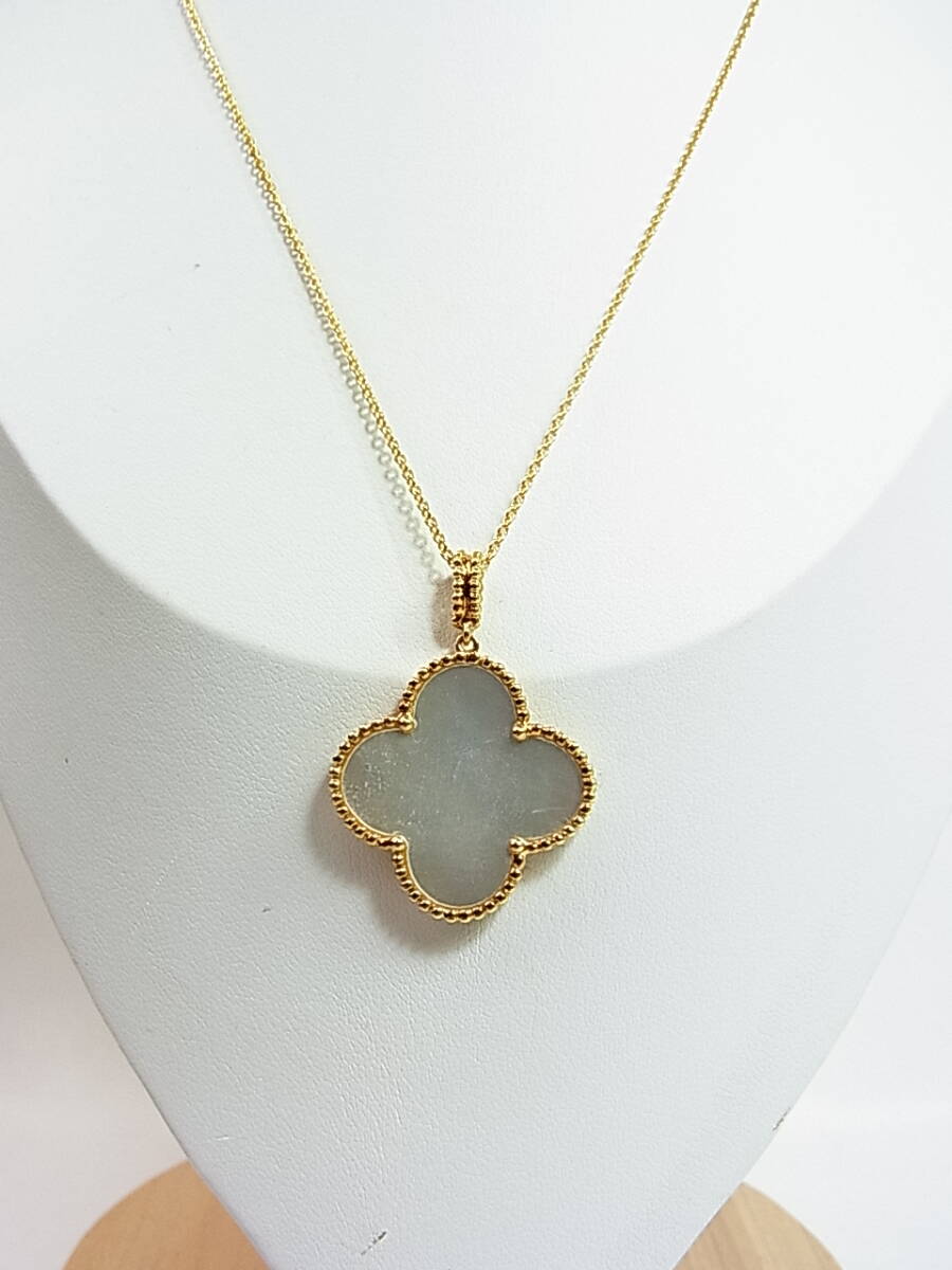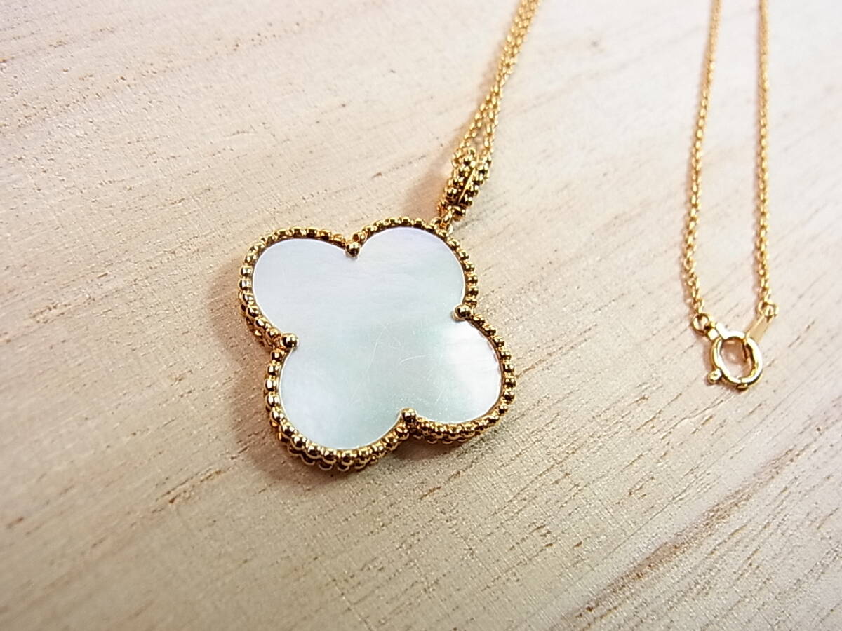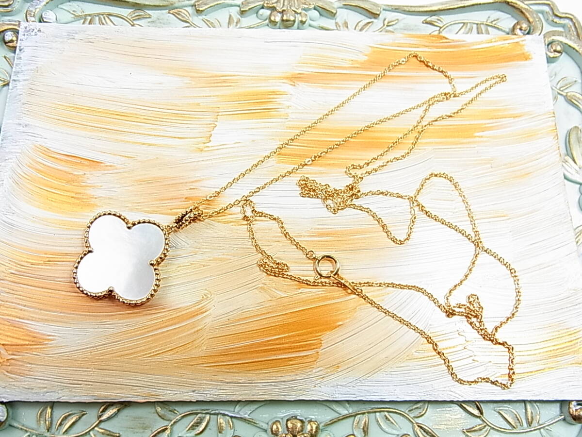 ★ご覧頂きありがとうございます 極美品 K18 両面シェル クローバーモチーフ ロングネックレス 白蝶貝 マザーオブパール 総重量9.0g 80cmチェーン 【商品説明】 K18イエローゴールドを使用した、四つ葉のクローバーモチーフのロングネックレスです。 両面に天然シェルがあしらわれたデザインで、リバーシブルで使用できます。 ●色味:乳白色〜アイボリー系 ●光沢:虹色の干渉光(真珠層特有の輝き) ●質感:滑らかで艶やか、光の角度で表情が変化 ●シェルは角度によって虹色の光沢を放ち、胸元を華やかで上品に演出します。 ●総重量9.0gと、しっかりとした重みと存在感があります。 ●チェーンの長さは約80cmのロングサイズで、ゆったりと着用でき、シンプルなニットやワンピースにも映えます。 ●ペンダントトップはクローバーの縁がK18で丁寧に囲われており、極美品の大変きれいな状態で。 画像のケースに入れさせていただきます ★ブランド:ノーブランド(ジュエリー) ★商品名:K18 両面シェル クローバーモチーフ ロングネックレス ★素材:K18イエローゴールド、天然シェル(白蝶貝・マザーオブパール) ★付属品:通常の箱ケース ★仕様:クローバーモチーフ(四つ葉)、両面シェル、ロングチェーン ★正規品(K18刻印有) 【サイズ】 総重量:約9.0g チェーン長さ:約80cm トップ(クローバーモチーフ)サイズ:約2.7cm × 2.7cm トップ厚み:約2.4mm 【商品の状態】 美品USED品 全体的にきれいで、極美品の状態です。天然シェルです 微細なチリ傷はありますが特に目立つ傷や汚れは見当たりません。USED品であることをご理解いただける方のみご検討ください。(商品管理番号 ) **チェーンも枠もK18(18金)素材です。白蝶貝(マザーオブパール)のクローバーモチーフは、幸運のシンボルとして世界的に人気が高く、ラグジュアリーなジュエリーブランドでも定番のデザインです。チェーンに「K18」の刻印があり、素材の信頼性を保証しています。シンプルなデザインのため、デイリーからフォーマルなシーンまで幅広くお使いいただけます。 ※インボイス 領収書の発行はしておりません |