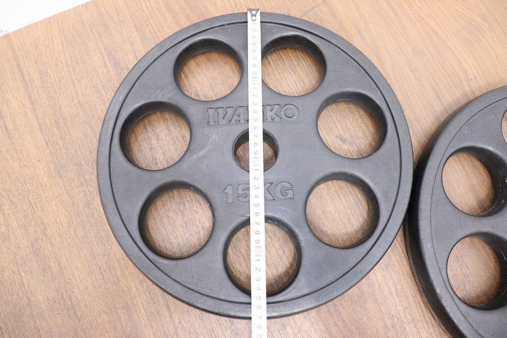 | IVANKO◆オリンピックラバーダンベル◆15kg×2枚◆計30kg◆径50mm◆ウェイトトレーニング◆現状品 | ||