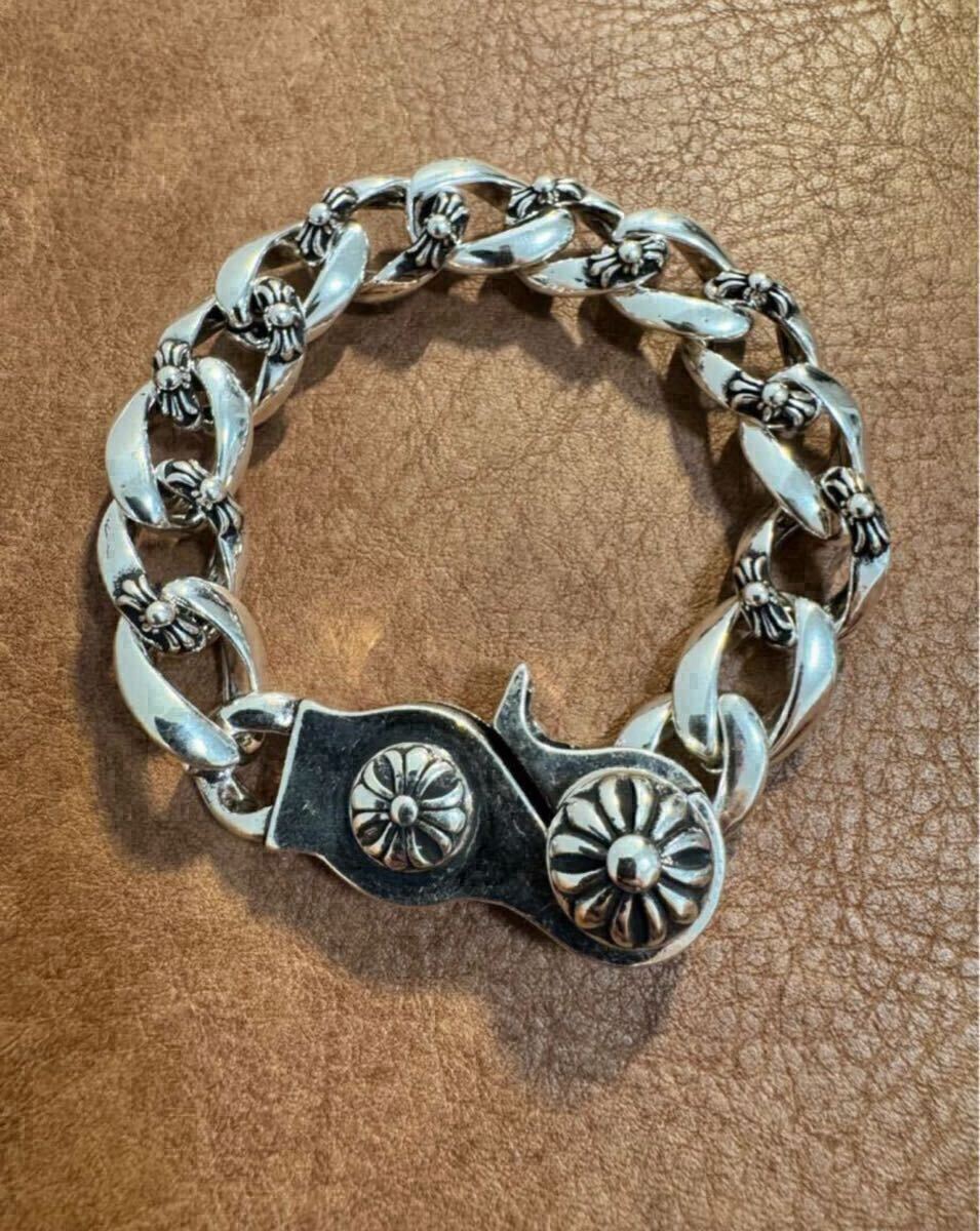 ブレスレット リストバンド シルバー チェーン 人気 フローラルクロス ビンテージシルバーコーティング ブレスレット