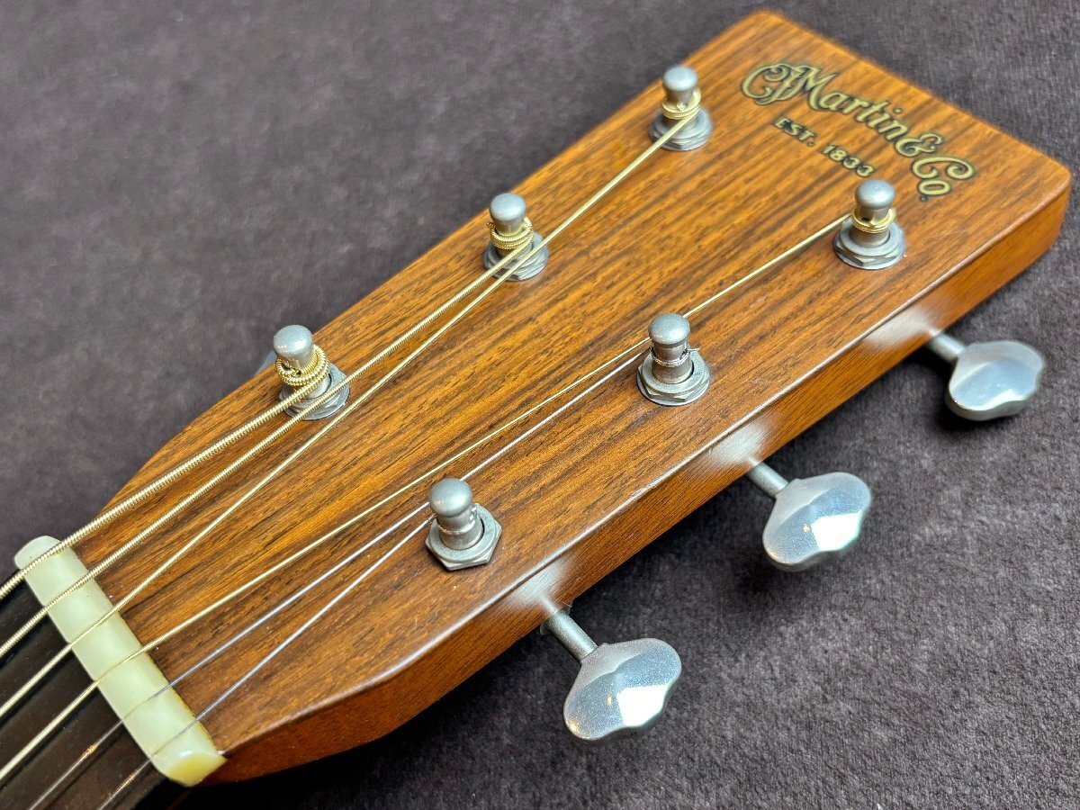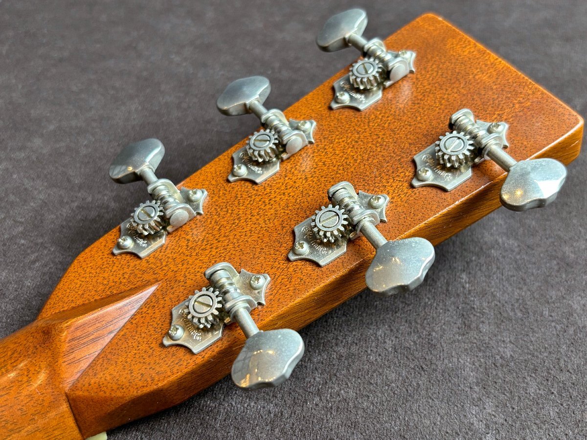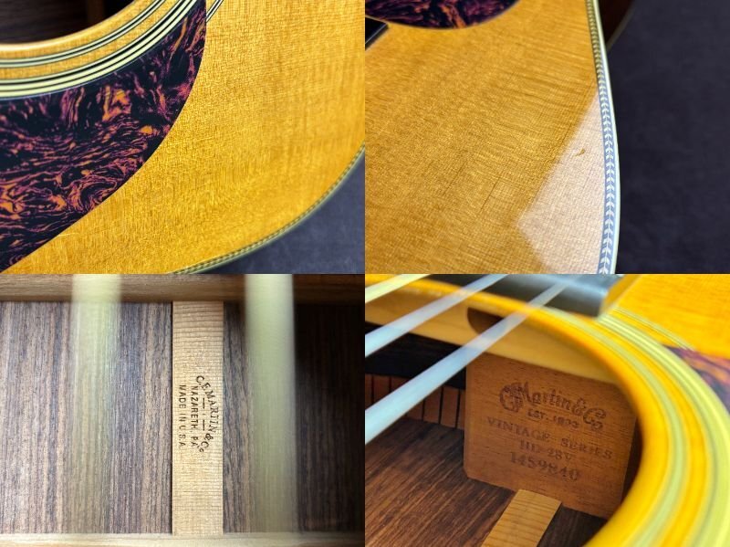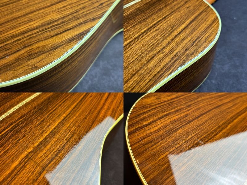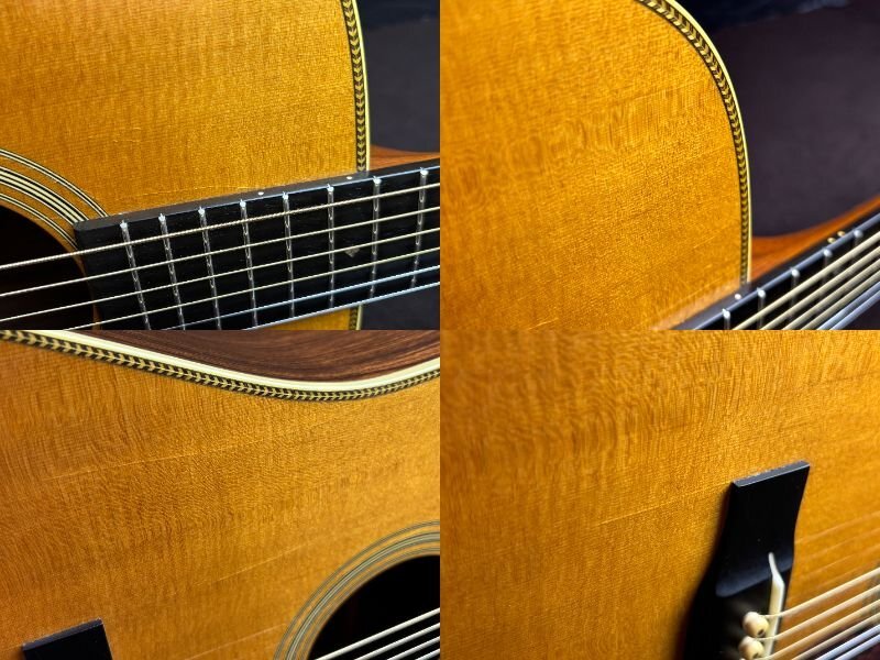 Martin HD-28Vでございます。 全体的に傷や細かな打痕など、使用感がございます。 ボディトップ表面に薄いウェザーチェックやクラックが見受けられます。 1弦ペグのワッシャーが欠品していますが、現状使用において目立った問題はございません。 3/4/5/6弦ナットに摩耗が見受けられ、解放弦でビビりが生じています。 現状その他大きな問題点は見受けられません。 ネックの反りに関して大きな問題点は無く、トラスロッドも調整可能です。 上記状態から、こちらは現状品として出品させていただきます。 現状品に関してはその他不具合等ありました場合もご対応出来かねますので、ご了承の上ご入札くださいませ。 |