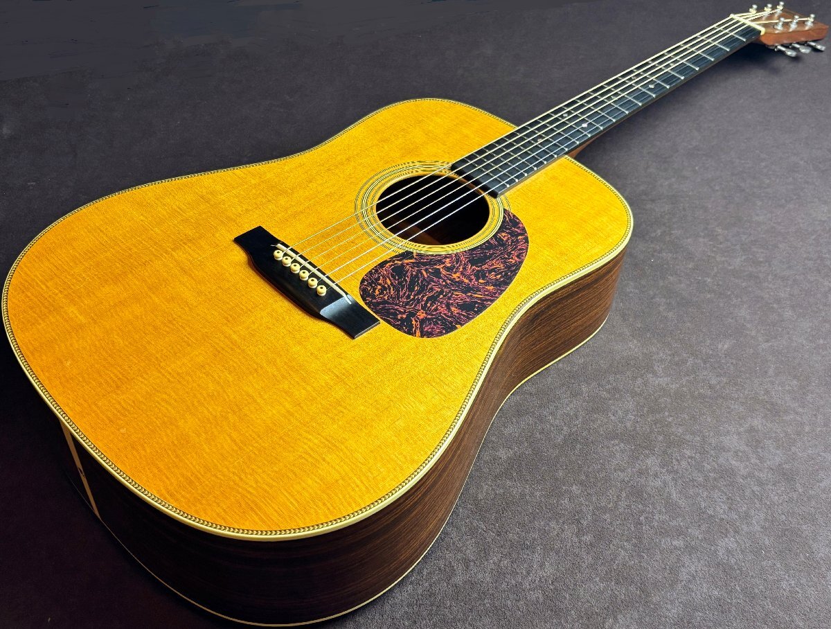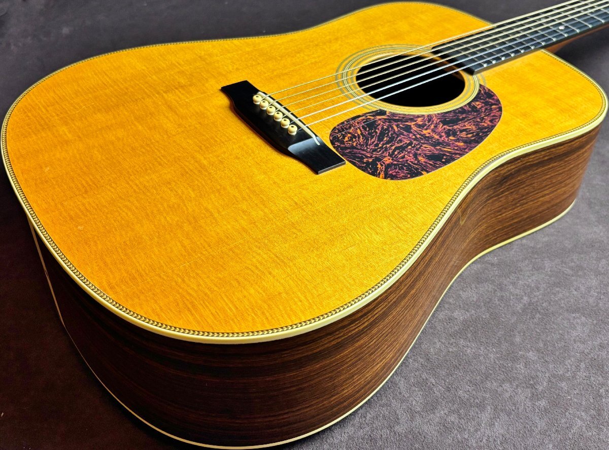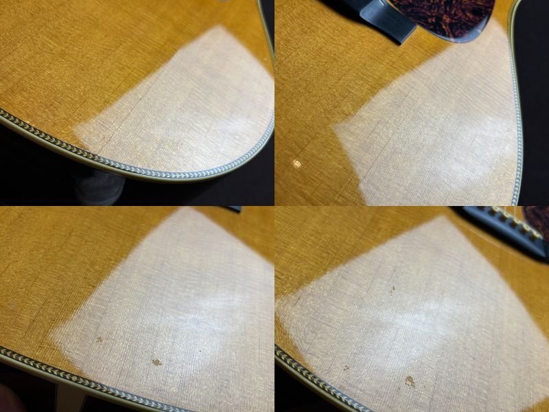 Martin HD-28Vでございます。 全体的に傷や細かな打痕など、使用感がございます。 ボディトップ表面に薄いウェザーチェックやクラックが見受けられます。 1弦ペグのワッシャーが欠品していますが、現状使用において目立った問題はございません。 3/4/5/6弦ナットに摩耗が見受けられ、解放弦でビビりが生じています。 現状その他大きな問題点は見受けられません。 ネックの反りに関して大きな問題点は無く、トラスロッドも調整可能です。 上記状態から、こちらは現状品として出品させていただきます。 現状品に関してはその他不具合等ありました場合もご対応出来かねますので、ご了承の上ご入札くださいませ。 |