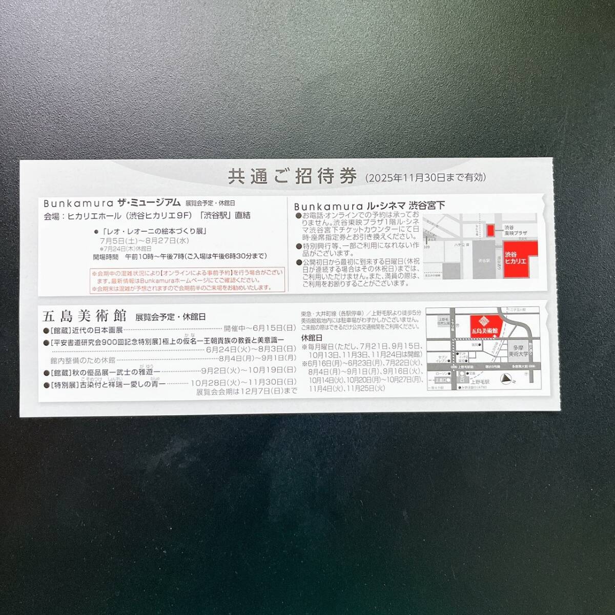 【簡易書簡送料無料】 Bunkamuraザ・ミュージアム ル・シネマ渋谷宮下 五島美術館 株主優待共通招待券 <有効期限:2025年11月30日>