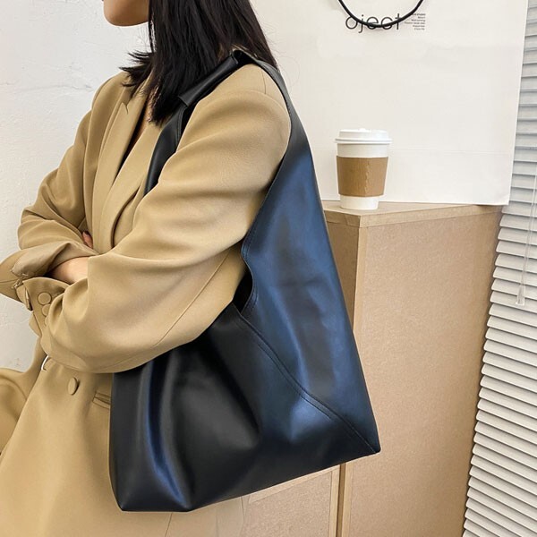 商品説明 | シンプルな黒ブラック モード系デザイン PUレザーのトライアングルバッグです 季節を問わず使えるトートバッグ エコバッグ ワンショルダー 手提げ姿も様になる ちょっと変わったデザインがおしゃれです メンズ レディースを問わないアイテムです A4サイズも余裕で収納可能 通勤 通学 財布 折りたたみ傘など 大体の物は収納できます 海外製品ですので完璧な品質を求める方はご遠慮ください(その代わり安いです)染料の香りが残っている場合は屋外で陰干ししてください