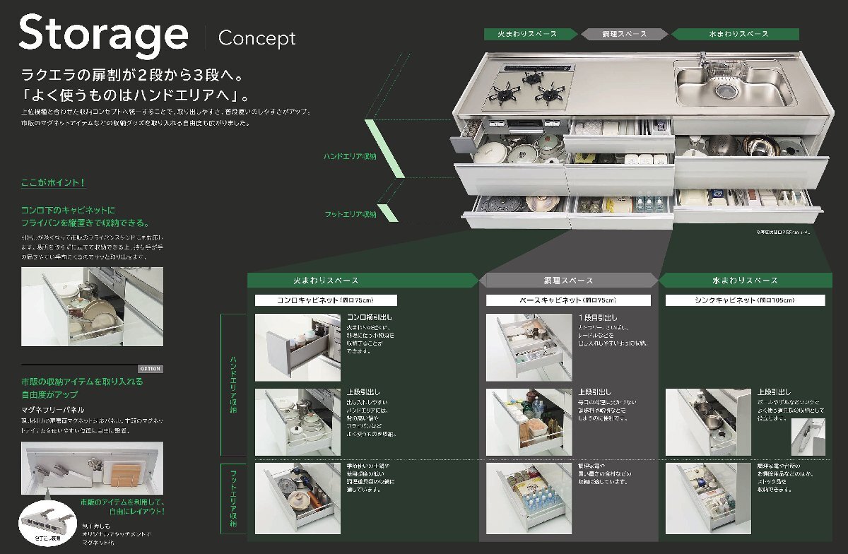 ◆季節使いの土鍋や調理家電もラクラク入る『フットエリア収納』