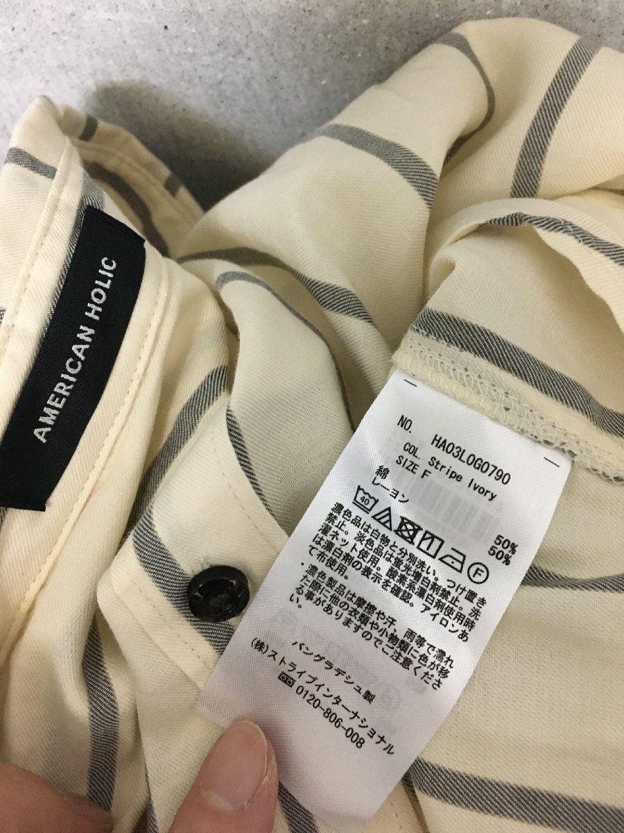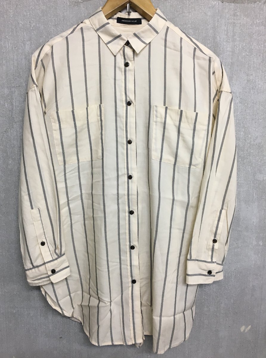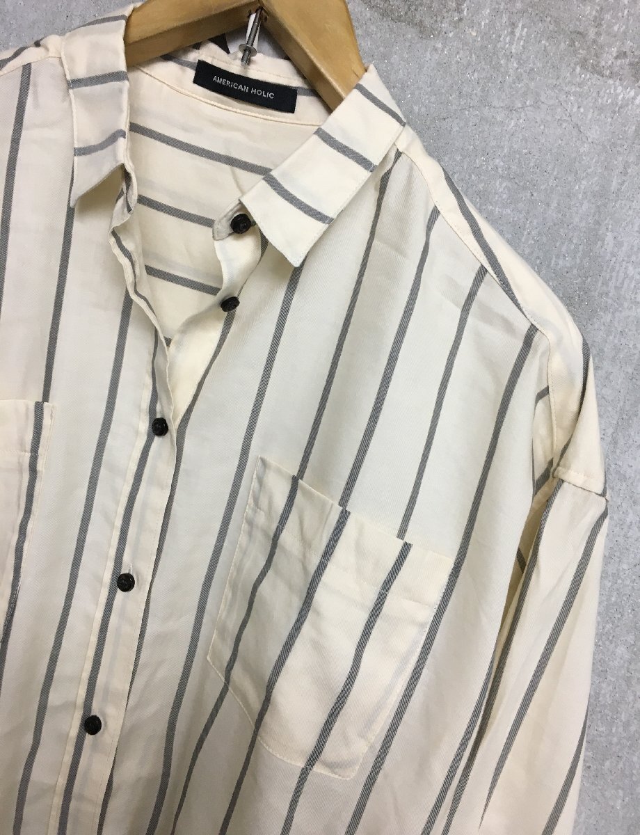 ◆ ◆AMERICAN HOLIC アメリカンホリック ダブルポケット ストライプ シャツ ベージュ系 美 サイズF