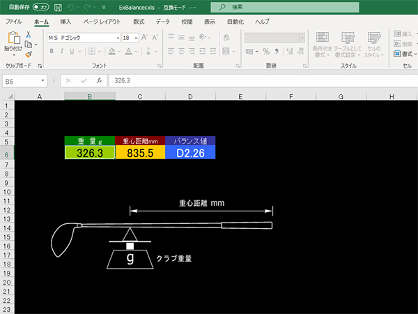 【はじめに】 ご覧いただきありがとうございます。 ゴルフクラブの指標の一つにスイングバランスがあります。 別名スイングウェイトとも言い、D1、D2などといった値で呼ばれます。 この商品はMicrosoft社の表計算ソフト Excel (エクセル)を使って クラブのスイングバランス計算をするプログラムファイルです。 計算方法はクラブメーカーが採用している国際規格です。 出品画像にあるように、クラブ重量と重心距離を測り、Excel上にて その2つの数値を入力すれば瞬時にバランス値がわかります。 【商品】 ※お渡しする商品は、Excel のファイル1個となります。 【必要なもの】 ■Excel がインストールされている Windows PC Excel は数年毎に新しい機能を備えた新(上位)バージョンが発売されています。 以前(下位)のバージョンでもファイルを開いて使用できるようにするため 画像3枚目にあるように「完全に互換性のある形式」で 保存していますのでExcel 2019 2016、2013、2010、2007はもとより 97-2003でもご使用できます。 ■はかり : クラブの重さを測れるもの、 例えば最小単位1gで1000gまで測れる家庭用デジタル秤があれば良いでしょう。 最近では0.5g単位、0.1g単位まで測れるものが、安価になりましたので これから購入される方はそういうものをお求めになるとさらに精密に計測できます。 ■ものさし : クラブのグリップ側から重心位置までミリ単位で測れるもの。 例えば、スケール、メジャー、コンベックスなど。 コンベックスという呼び名はあまり知られていませんが 意外とご家庭にお持ちの方が多いです。画像はこちら ■その他 : マスキングテープ、ペン、CDのプラスチックケースなど。 正確に重心位置を出すために指先では不十分ですので、 CDのプラスチックケースなどがあればOKです。 <重心位置測定手順の例 > まずおおよその重心位置に3cm程度のマスキングテープを貼っておきます。 (テープの役目は目印のマーク入れと滑り止めです) 次に平らな台の上にCDケースのふたを90度開けた状態で置きます。 (ちょうど本を扉状に開いて立てておく要領です) CDケースのどちら側か一片には1mm程度の薄い部分がありますので そこにクラブを乗せバランスをとればうまく重心位置がわかります。 ペンで重心位置に印をつけてグリップエンドからの長さを測ります。 正しい測定のために大切なポイントがあります。 お渡しする商品にわかりやすく図入りで記載してありますので すぐご理解いただけます。 ---------------------------------------------- 【よくある質問】 Q1 : 得られた値は市販の製品(計測器)と比べて正確なものでしょうか? A1 : スイングバランスとは、元々計算によって求められた結果(数値) のことですので、重心までの長さとクラブの重量を正しく測っていれば その値は100%正確です。 一方、製品(計測器)はその値に合致するように作られたものであり もしその計測器の作りやメンテナンスが悪ければ当然精度は下がります。 正確な重さと長さから計算したものは理論=絶対的なものです。 どうぞ安心してご使用ください。 Q2 : クラブは何でも測れますか? A2 : 製品(計測器)であっても何でもは測れません。 但し、出品の商品はそれより測定範囲を広く設定してあります。 例えるなら、プロ、アマを問わず通常プレーに使用されているウッド、アイアンなどはOKです。 唯一パターだけはフルスイングするためのものではありませんので、極端なものもあります。重すぎるもの、軽すぎるもの、長すぎるもの、短かすぎるものなど、クラブルールにさえ違反していなければ試合でも使用することができます。そういった極端なものは元々スイングバランスという概念以外のものですのでその範疇には含まれません。 一般的なパターは問題なく測定できますのでご安心ください。 【動作確認環境】 Windows 11 + Excel 365 (Office365) 最新版 Windows 10 + Excel 365 (Office365) 最新版 Windows 10 + Excel 2019 最新版 Windows 10 + Excel 2016 Windows 10 + Excel 2013 Windows 8 + Excel 2013 Windows 7 + Excel 2013 Windows 7 + Excel 2010 Windows XP + Excel 2007 Windows XP + Excel 2003 Windows 2000 + Excel 2000 【測定範囲】 測定範囲はA0~F9.98、製品(計測器)より充分広めとってあります。 (参考までに製品(計測器)のバランス計ではA0~F0程度です) 一般男性用でD1~D3、ウェッジなどでD5あればかなりヘビーなものです。 クラブの中で一番数値の出るのがパターで、そのパターの重い部類でもD台後半、中にはE0、E1などもありますが、もちろん測定範囲に含まれます。 ※次に示す極端なもの特殊なものは測定範囲に含まれません。 具体例 : 中尺、長尺パター、トレーニング用等のウェイトの付いた重いクラブなど 。 ---------------------------------------------- 【補足説明】 【ご注意】 送料、商品の受け取り説明に「送料負担は出品者」「送料無料」と なっていますが、商品はダウンロード方式またはメール(Eメール)にて 発信しますので お渡しに必要な料金は不要(発生しません)という意味です。 こちらから落札者様へ郵送や宅配などで