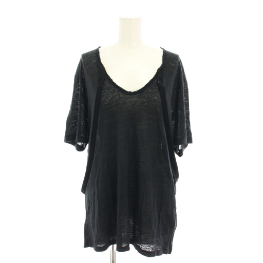 ニールバレット Neil Barrett カットソー Tシャツ ラウンドネック 半袖 サスペンダー 麻 リネン XL 黒 ブラック BJE51 0505 レディース