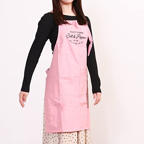 不二貿易 エプロン 幅65×厚み0.2×縦80cm ピンク 丸洗い可能 3段階調節 ポケット付き カフェ風 Salt&Pepper 71952