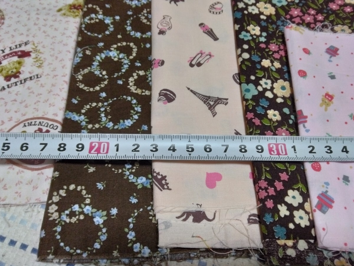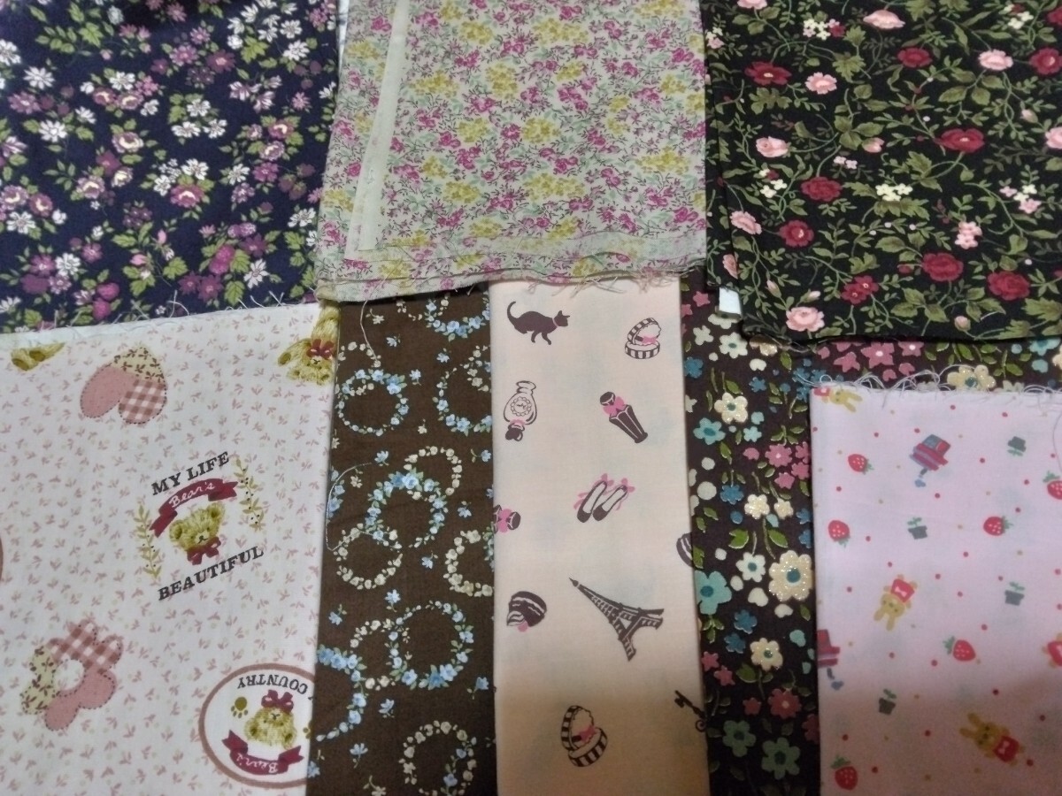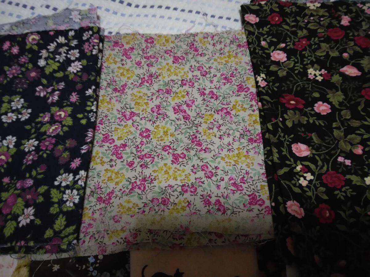 花柄などのハギレセットです。シーチングかスケア生地です。全部生地巾はありますが、縦の長さは12~18センチと狭いです。合計で、生地巾×120センチ超になります。パッチワークや小物作りなどにお役立て頂ければと思います。使用した残りと新品混合ですので、少しでも気になる方は、ご入札をお控え下さい。