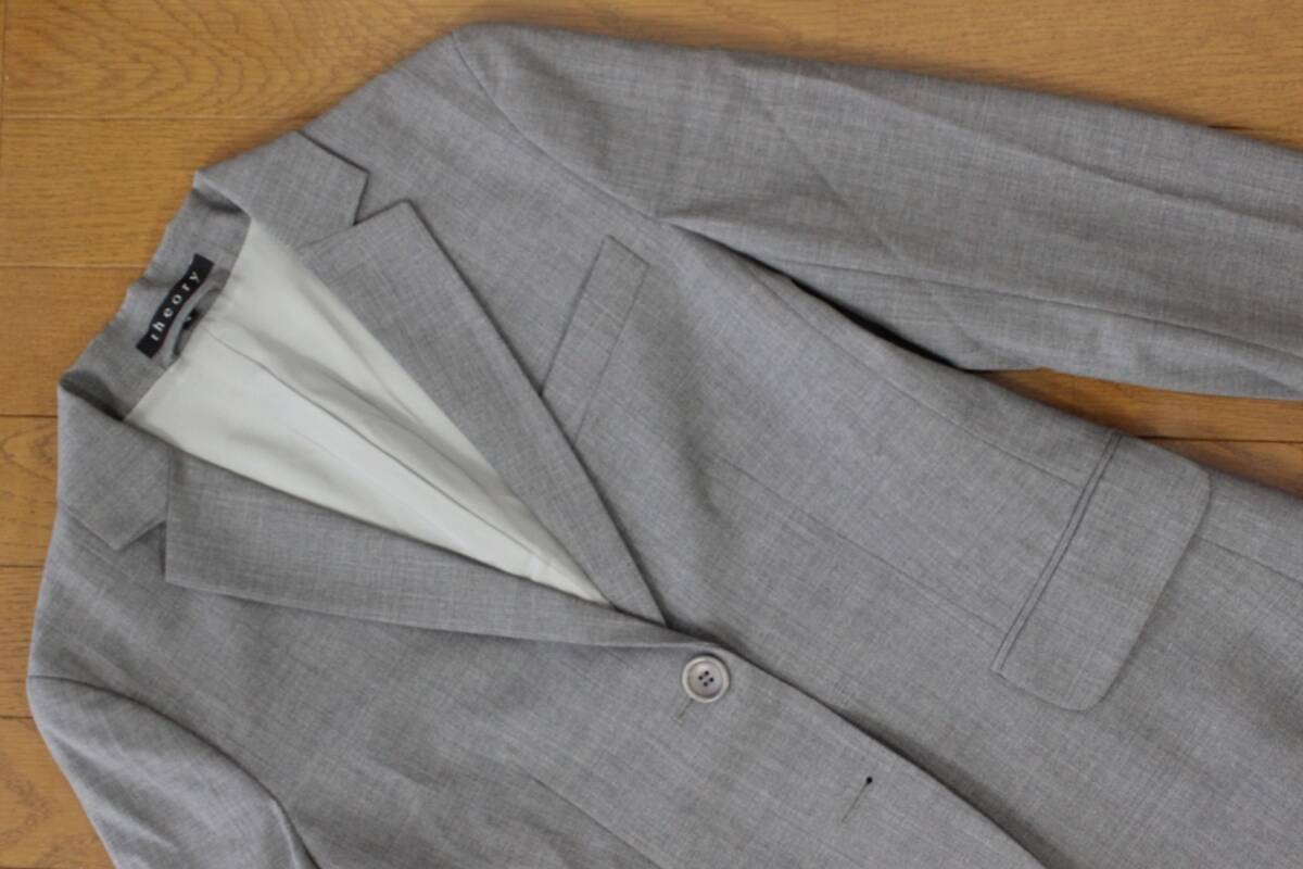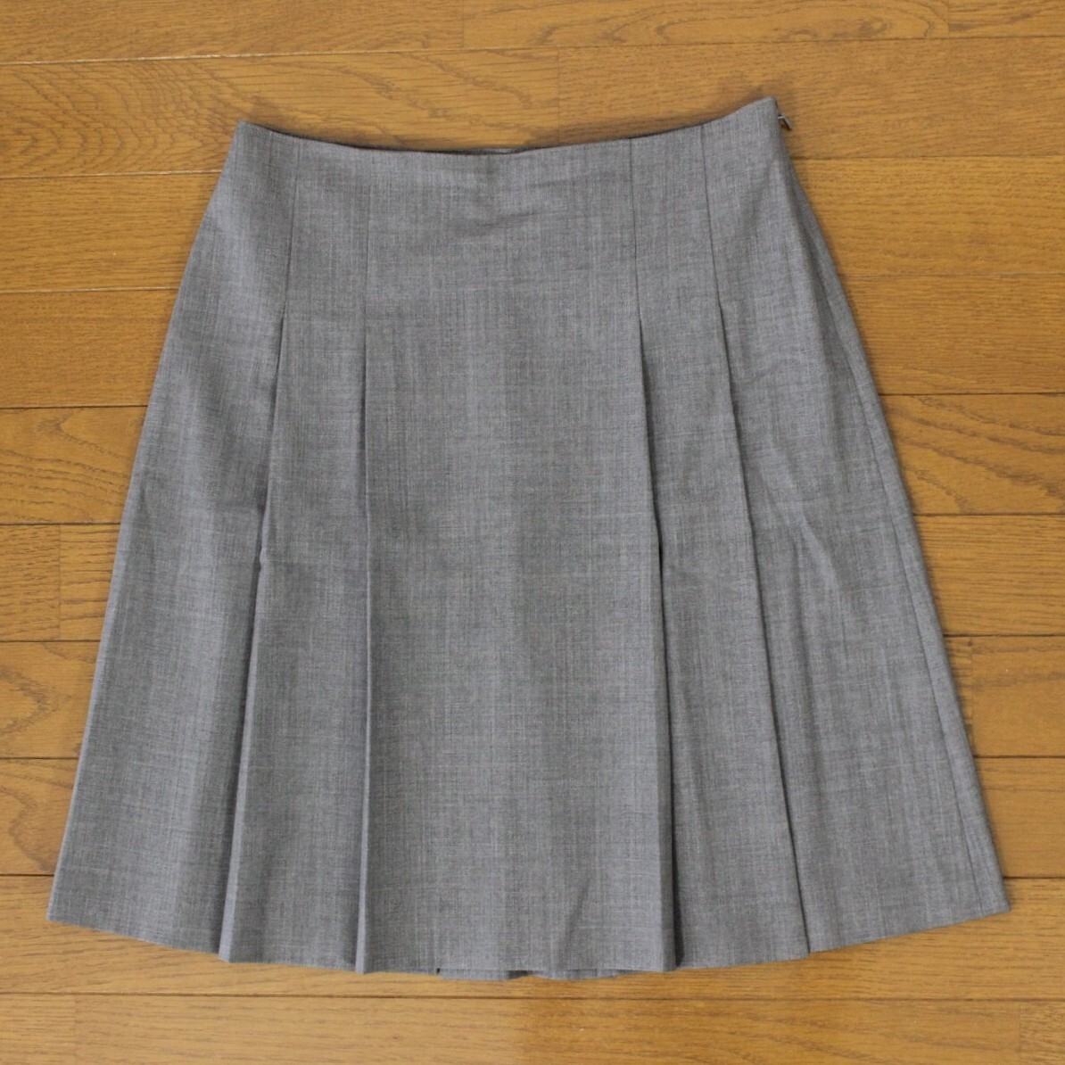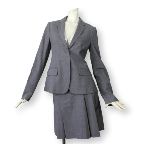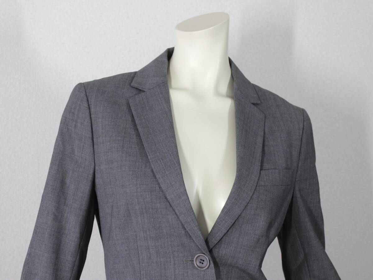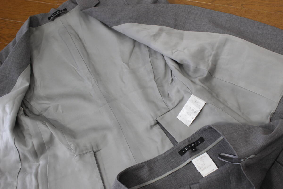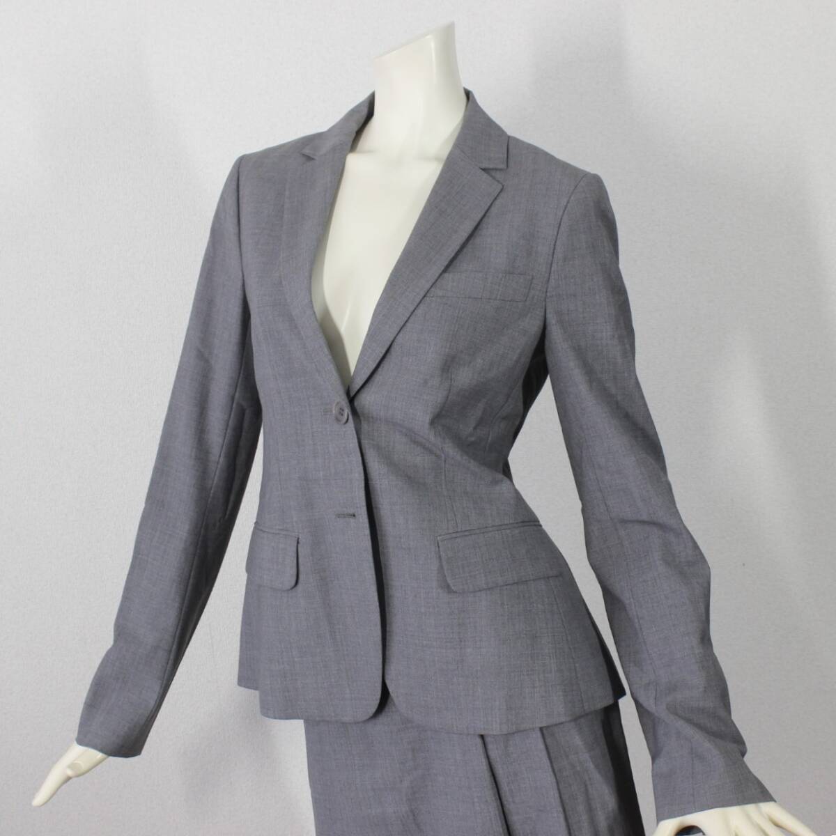 【美品】セオリー theory スカートスーツ 7〜9号(M)に相当 上4 下0 グレー 上質ウール 日本製 春秋冬対応 tqe セットアップスーツ