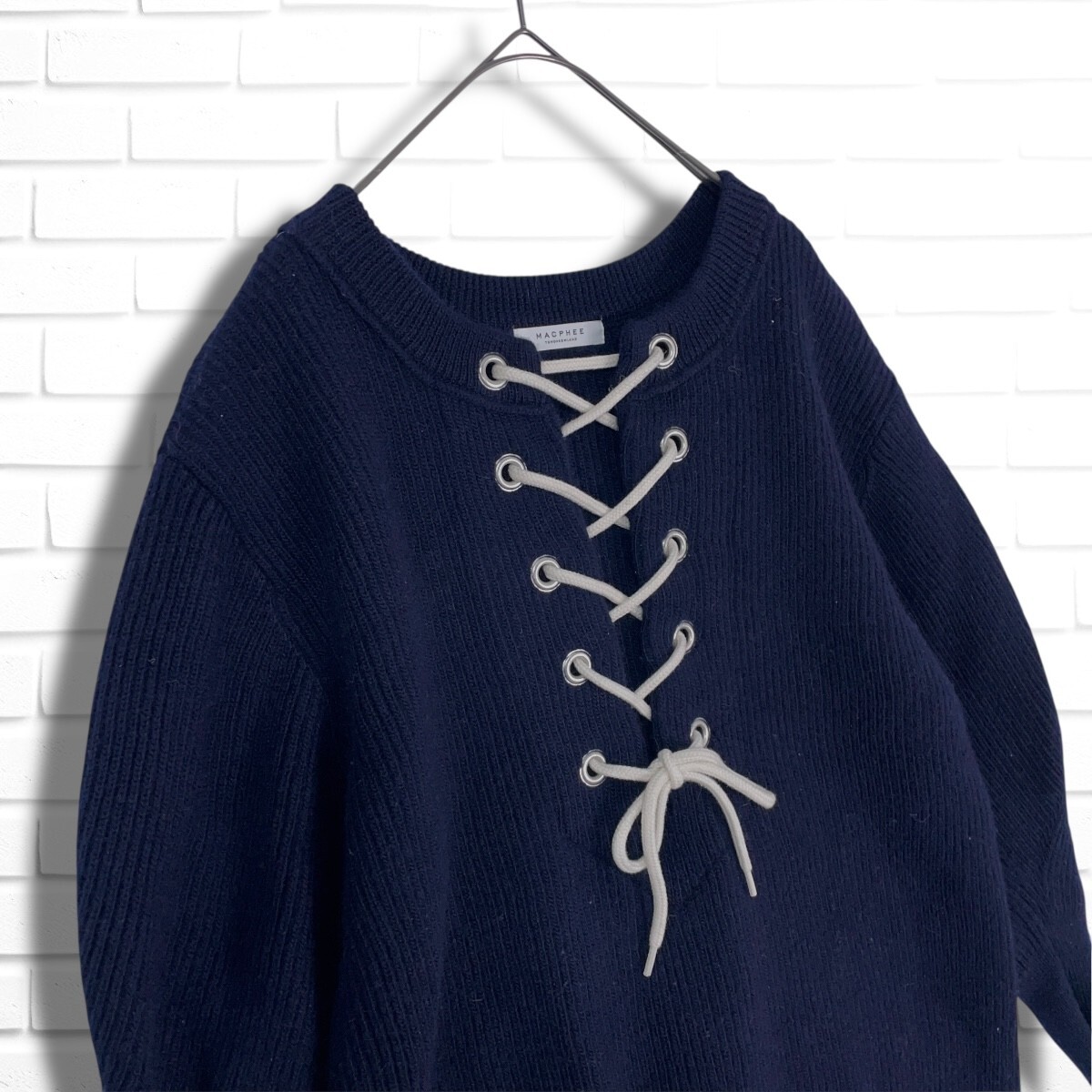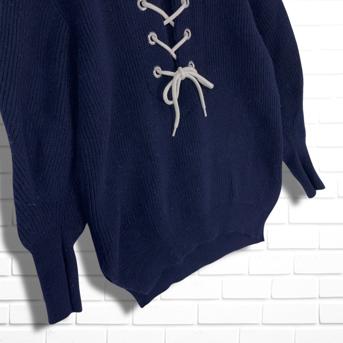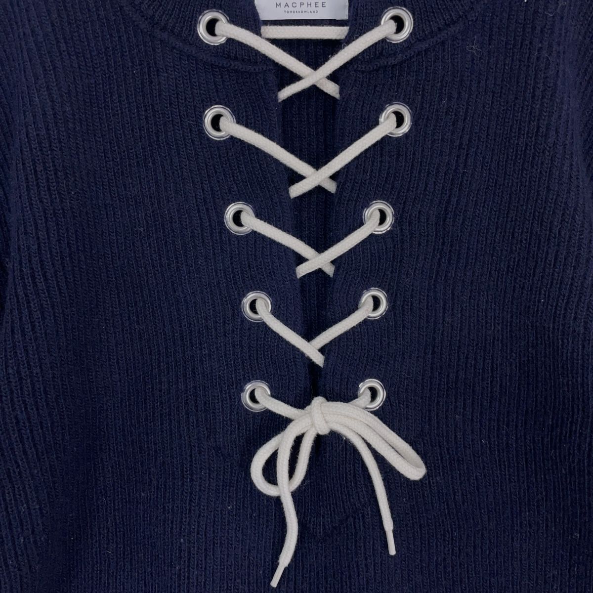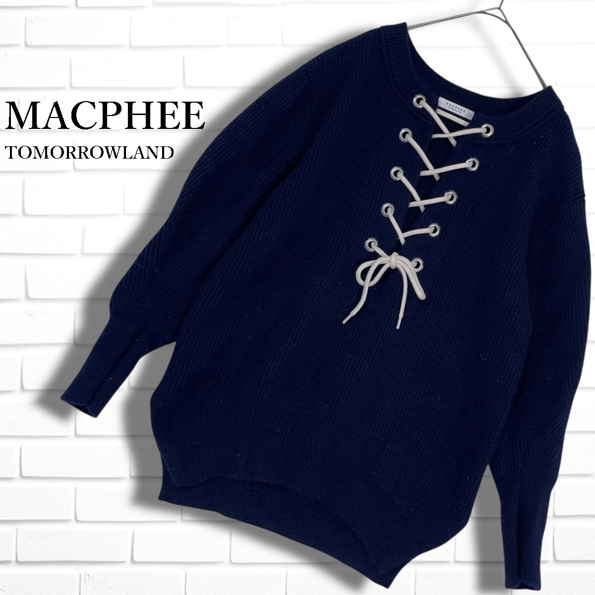 ◆美品◆ MACPHEE TOMORROWLAND マカフィー トゥモローランド ウール 100% ニット レースアップ ゆったり♪ 長袖 セーター 紺 ネイビー レディース S ◆送料無料◆ 0145J◇