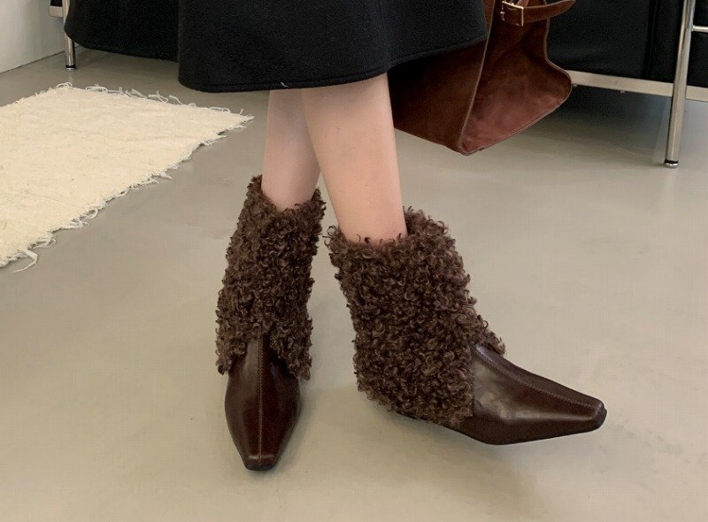 ブーツ ファー付き 切り替え シンプル 【36】22.5~23cm ブラック