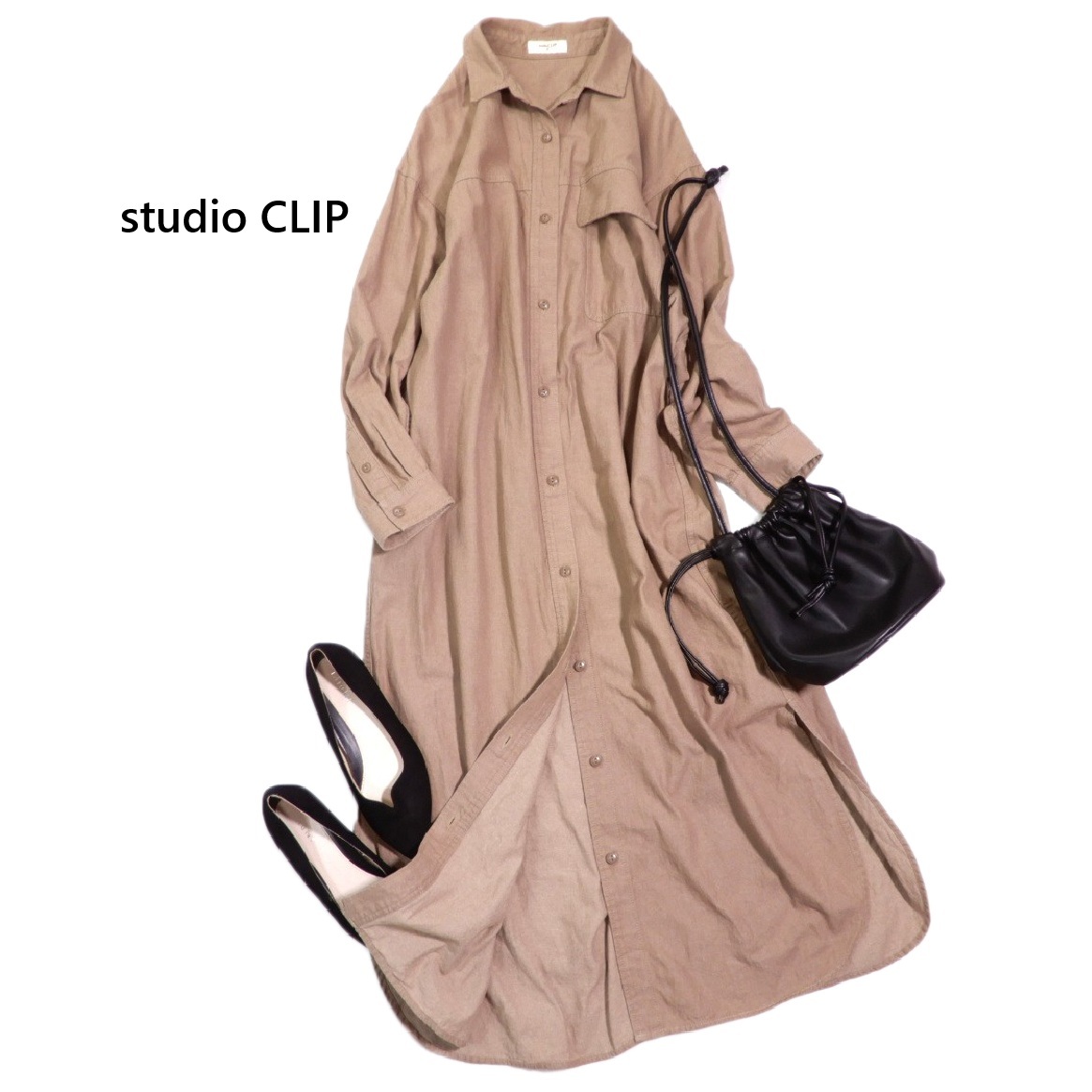 スタジオクリップ studio clip 使える☆カラーデニム シャツ ワンピース 羽織にも♪ FREE