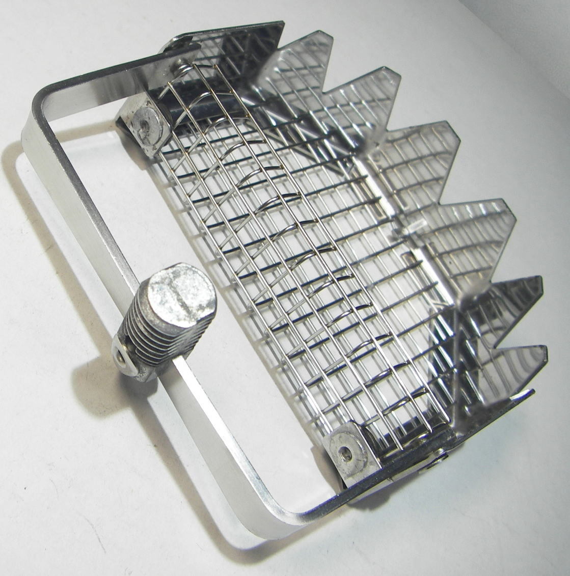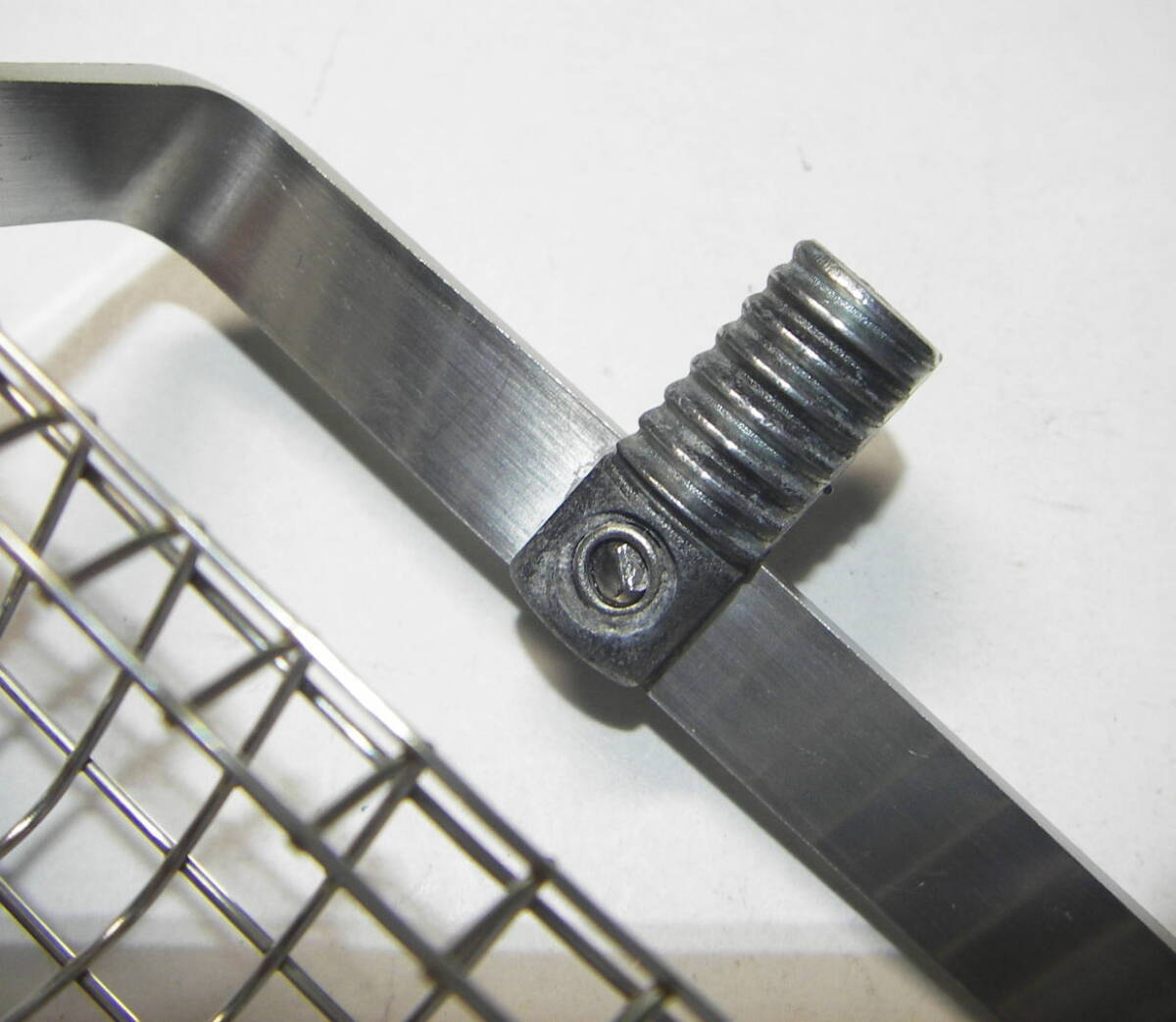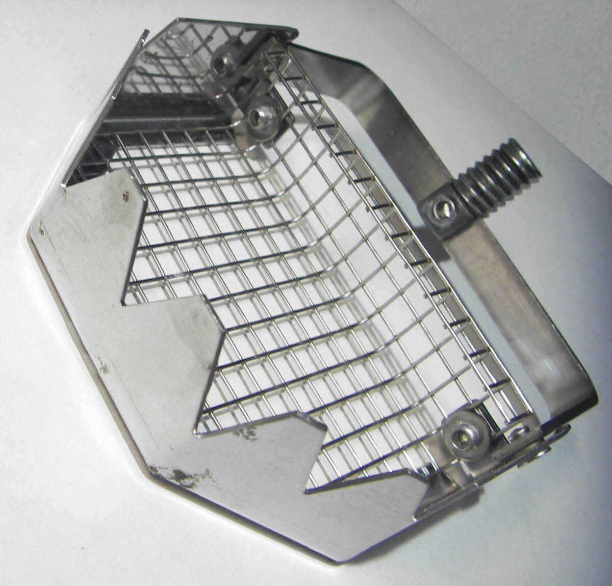 イガイ取り 幅:約9.5cm、高さ:約3.4cm 中古品です。 錆びにくく丈夫なステンレス製です。 取り付けフレームがワンタッチで折りたため、コンパクトに収納出来ます。 重量:93g、ネジサイズ/JIS W1/2 一般的な大サイズです。