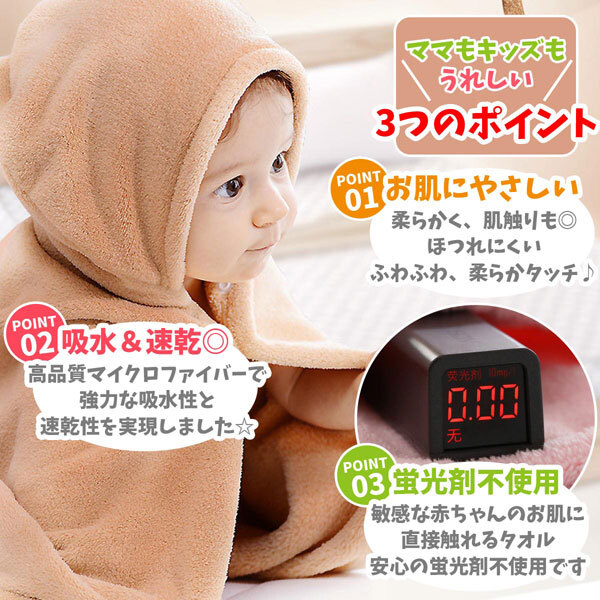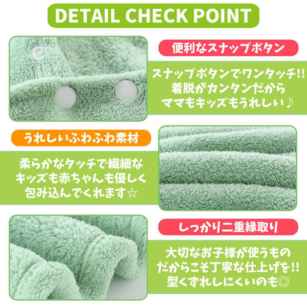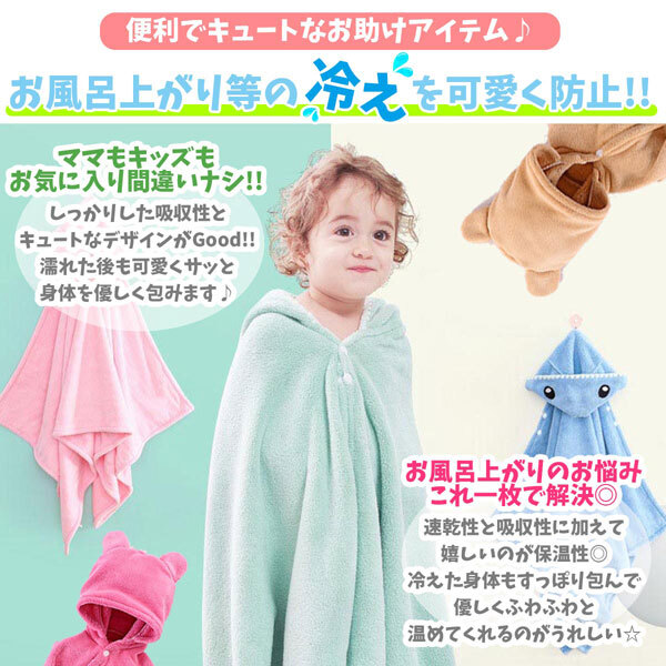 内 容 | ■キッズ アニマルフードブランケット タオル ラビット ■サイズ:85(約縦85×横150cm) ■素材:ポリエステル82%ナイロン18% ■カラー:パープル 可愛くてユニークな動物モチーフがデザインされた 子供用フード付きタオル。 フードをかぶると可愛い動物に早変わり♪ 極上の柔らかさとすぐれた吸収力。 さっと羽織れるのでバスタイムやプールで大活躍間違いなし! 毎日のお風呂も楽しくなりますね。 湯上りに簡単に使えるポンチョタイプ! ふわふわのマイクロファイバー生地は吸水性・速乾性に優れています。 フード付きのタオルは子供も大好き! |