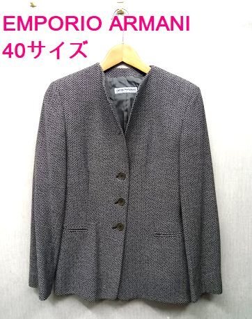 美品 ★EMPORIO ARMANI /エンポリオ アルマーニ ◎ノーカラージャケット レディース 40サイズ