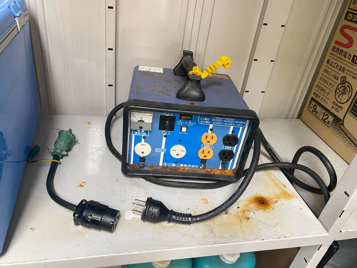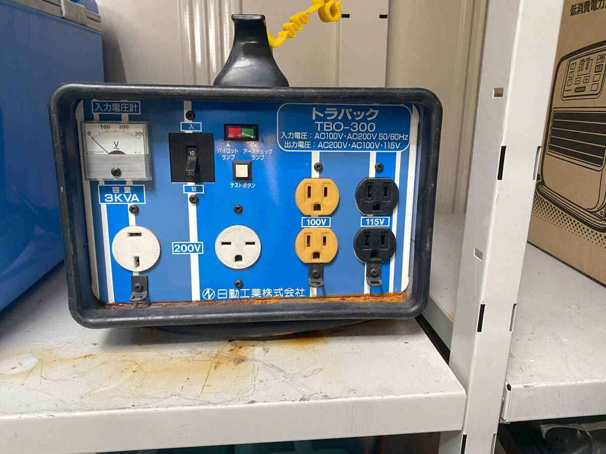 100V/200V共用の電源トランスで、電圧降下による機械停止や照明のちらつきを防ぐ便利なアイテムです。