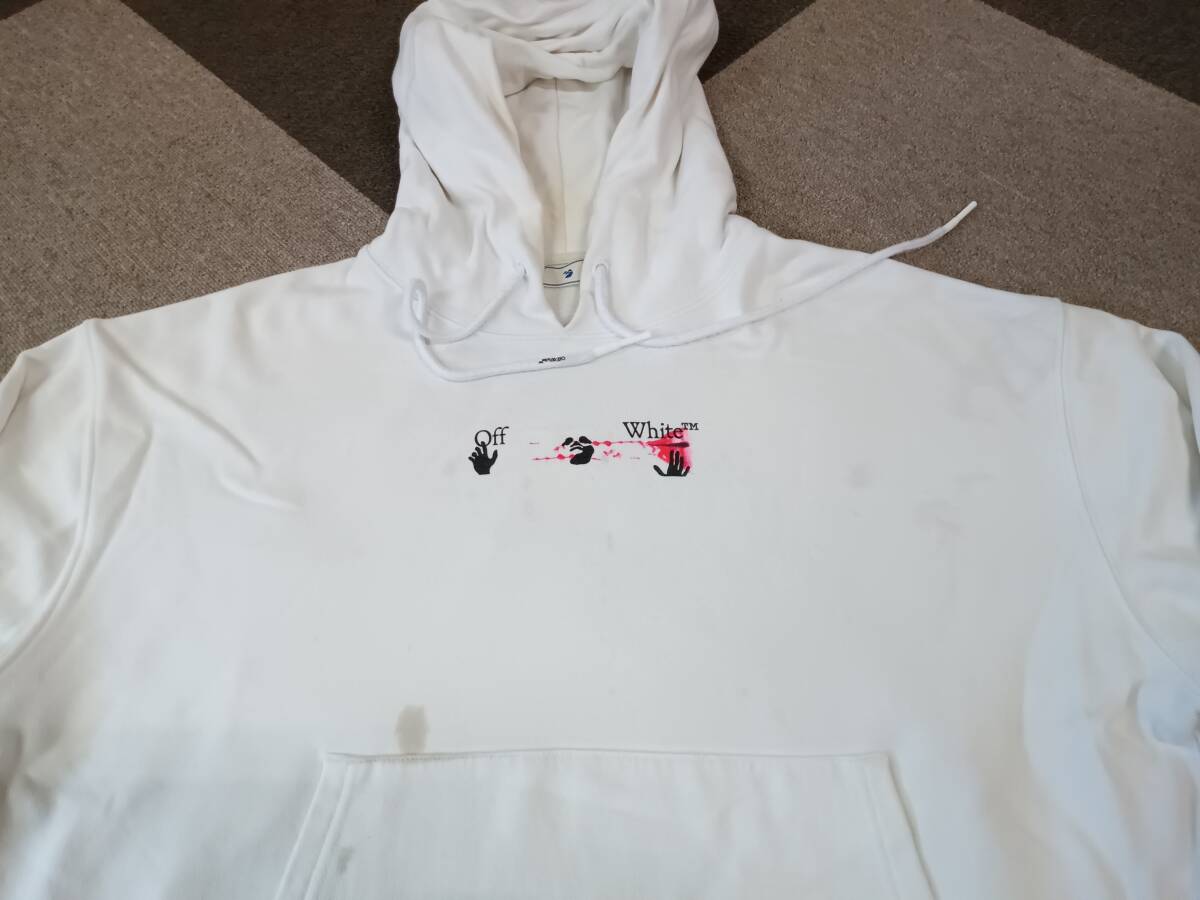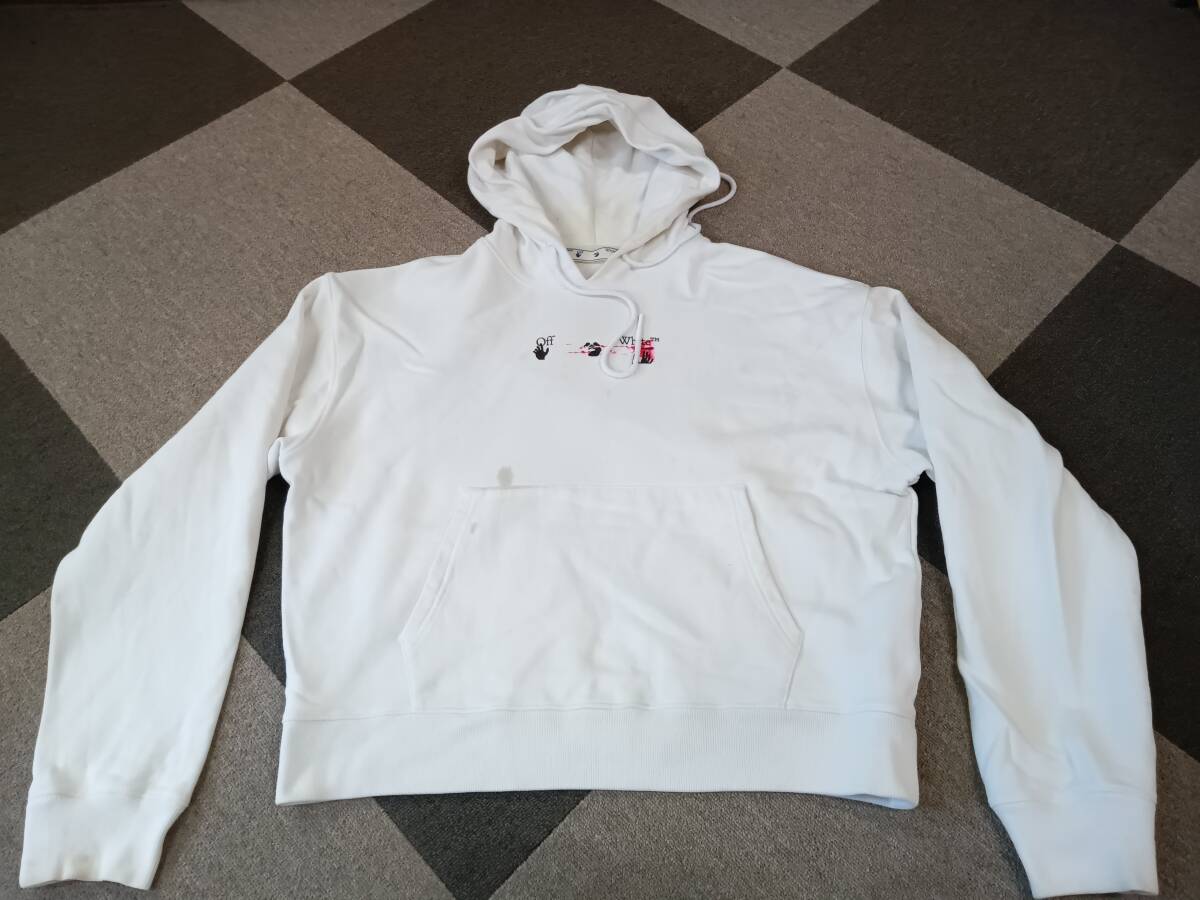 オフホワイトACRYLIC ARROW OVER HOODIEです。
