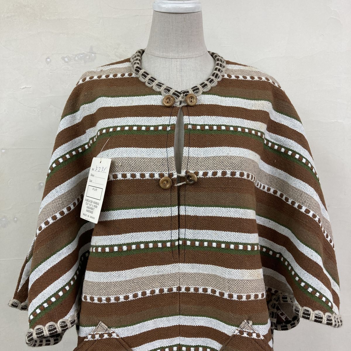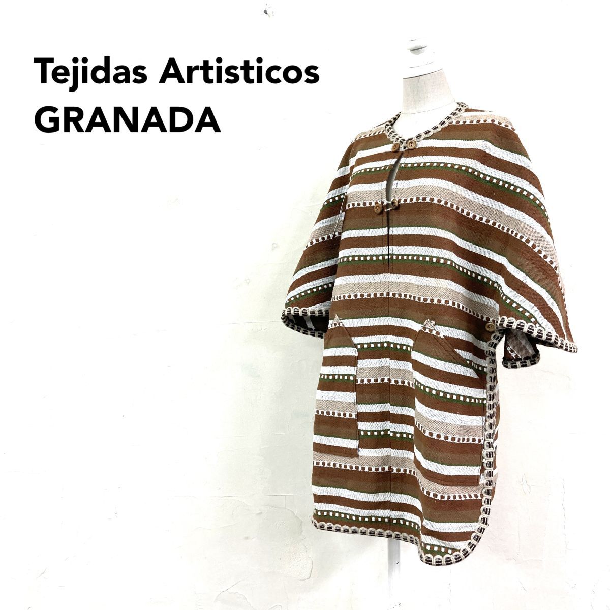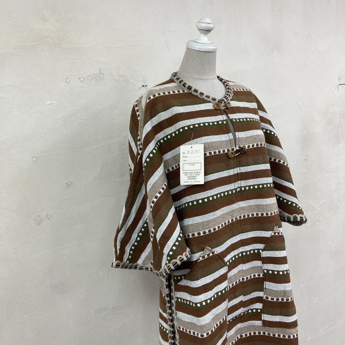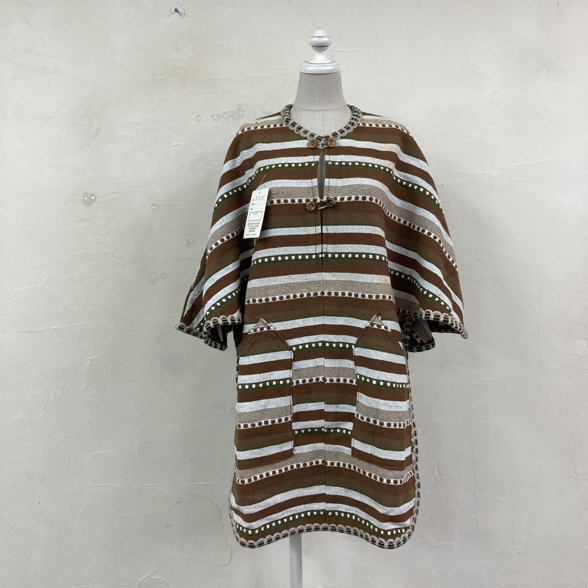 2K3357-G-N◆ Tejidos Artisticos GRANADA スペイン製 ニットパイピングポンチョ メキシカン ハンドメイド ユニセックス ◆ ブラウン