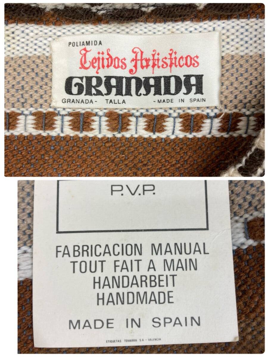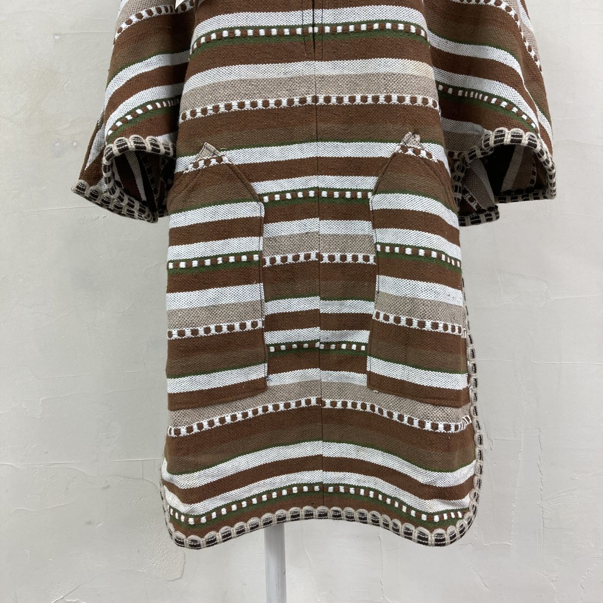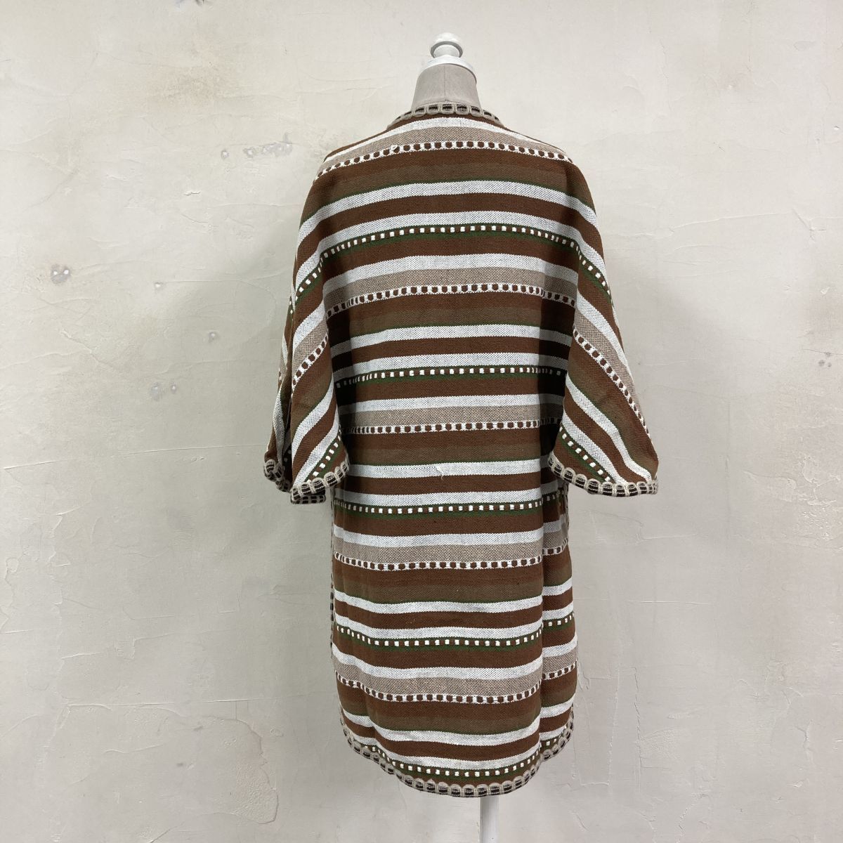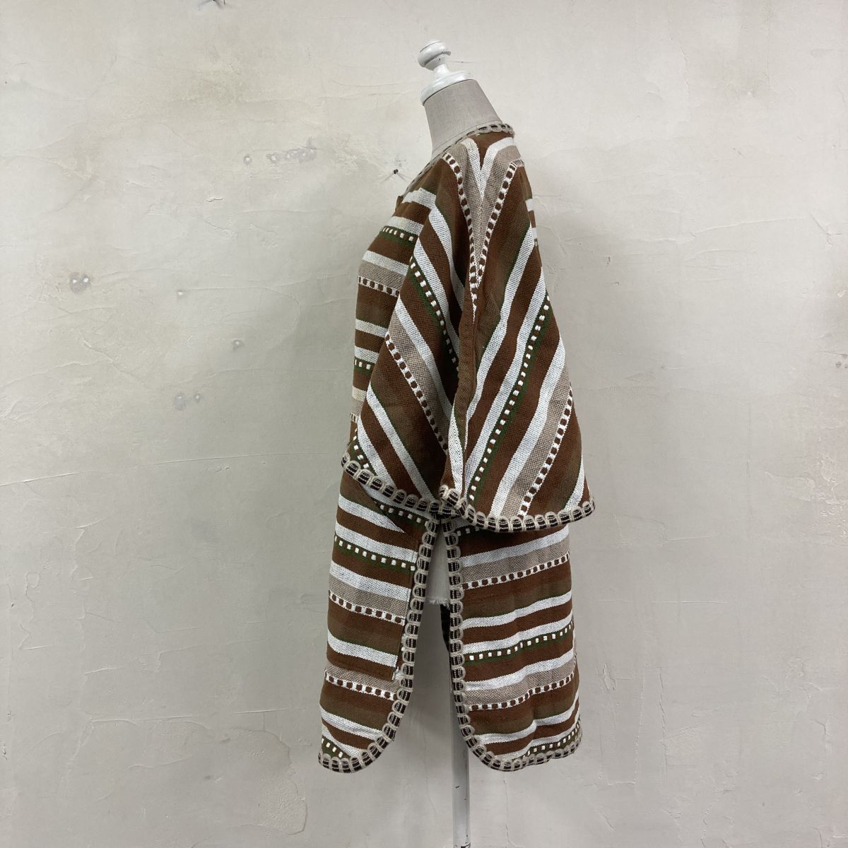 2K3357-G-N◆ Tejidos Artisticos GRANADA スペイン製 ニットパイピングポンチョ メキシカン ハンドメイド ユニセックス ◆ ブラウン