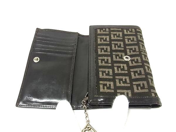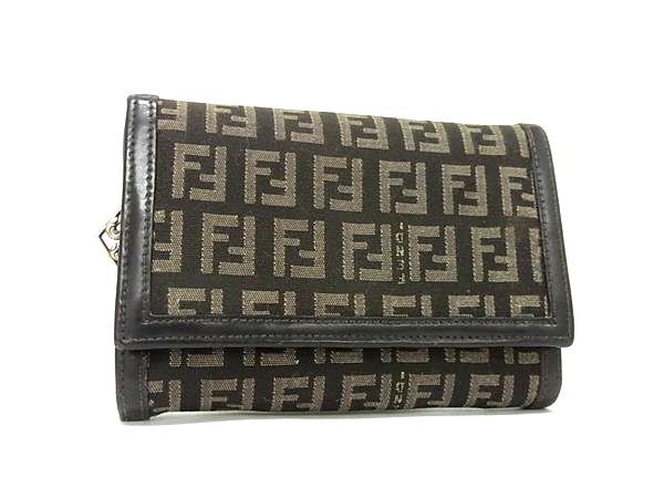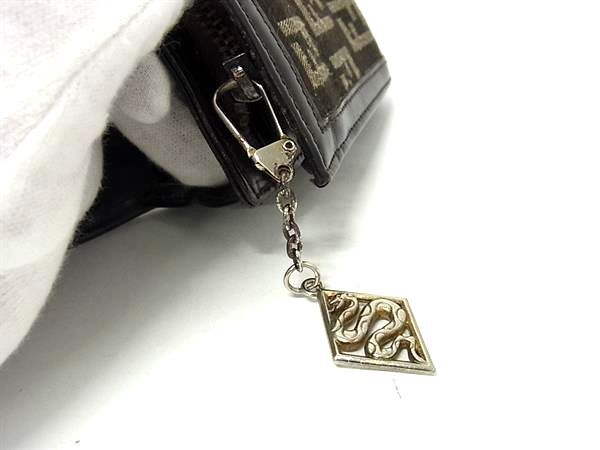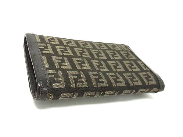1円 FENDI フェンディ ズッカ ズッキーノ キャンバス×レザー 二つ折り 財布 ウォレット 札入れ 小銭入れ ダークブラウン系 FV2006