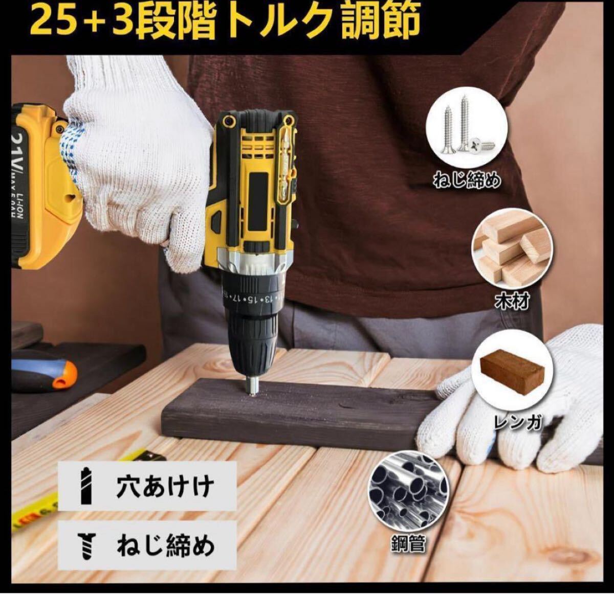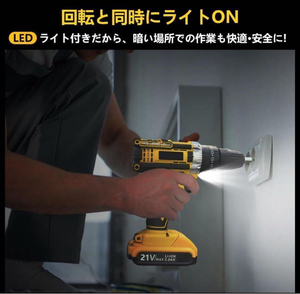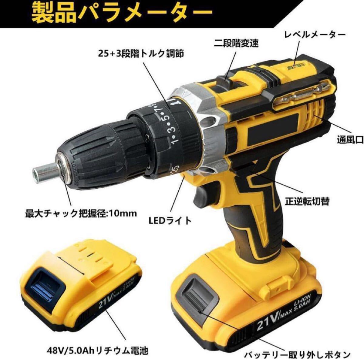 電動ドリル ドリルドライバー 多機能一体型 プロ級の精密 2個バッテリー付き