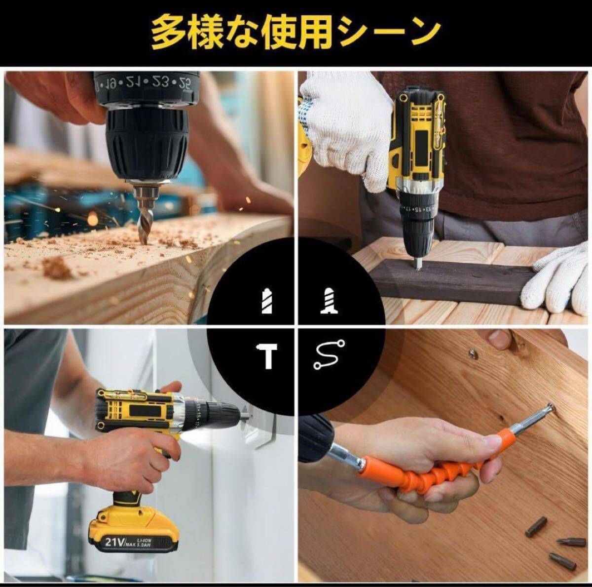 【高性能電動ドライバーセット】電動ドリルには大容量のリチウム電池が搭載されており、長時間の作業でも電源が途切れる心配はありません。電源コードの制約を受けることなく、自由に動き回ることができます。また、LED 照明が付属しており、暗い場所でも簡単に作業を続けることができます。