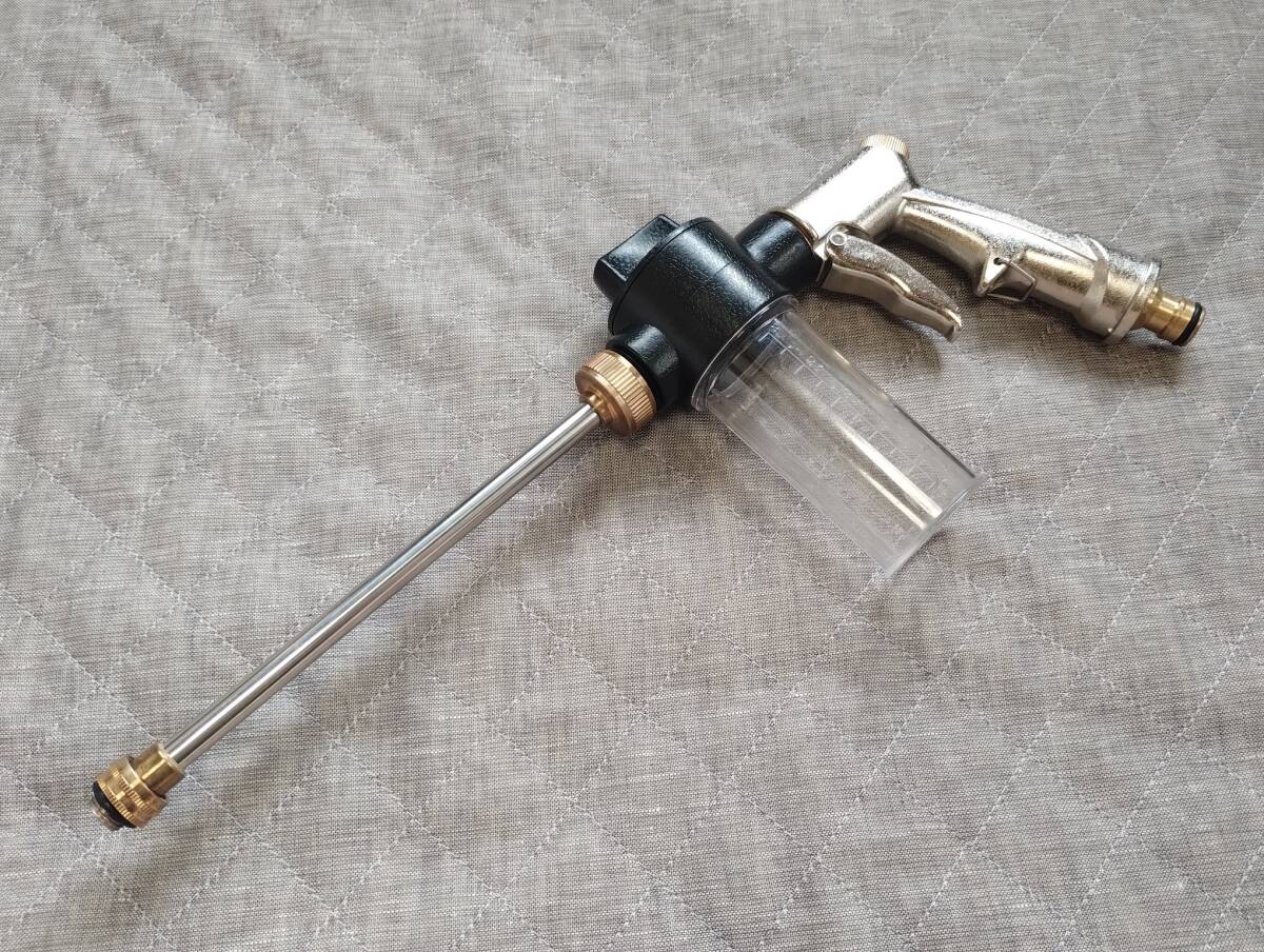 ピストルグリップ型ですが引金レバーの開け具合を加減しても水の勢いは調整できません。