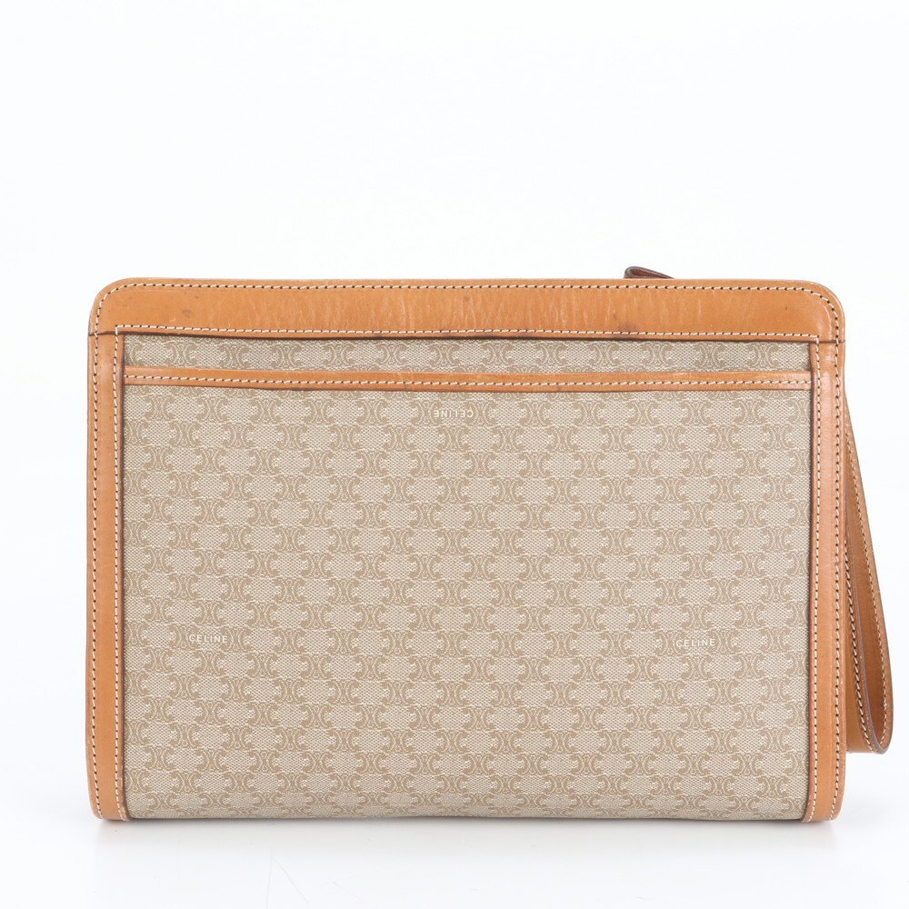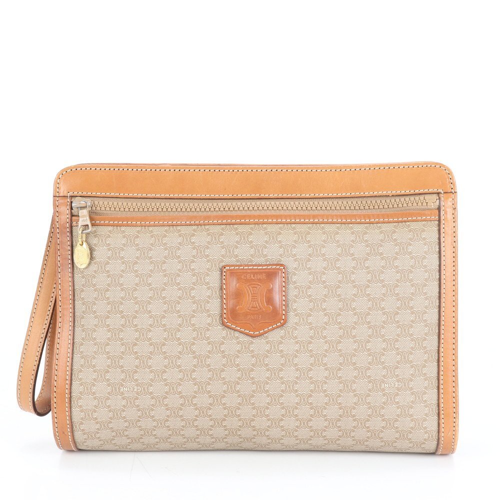 1円■極美品■セリーヌ■マカダム トリオンフ レザー セカンドバッグ クラッチ ポーチ 本革 ブラウン 茶色 メンズ VMM CT38-2