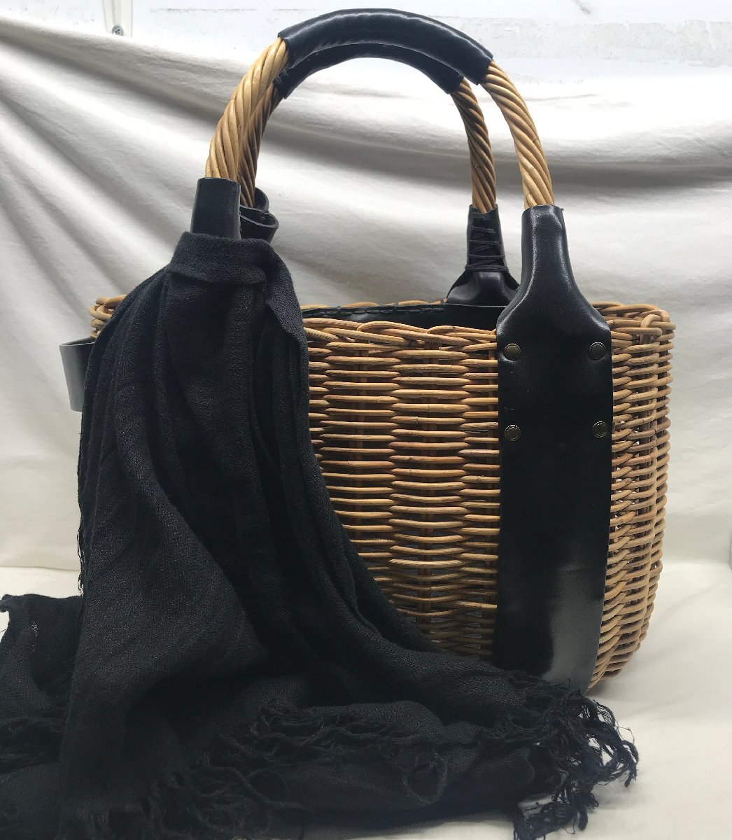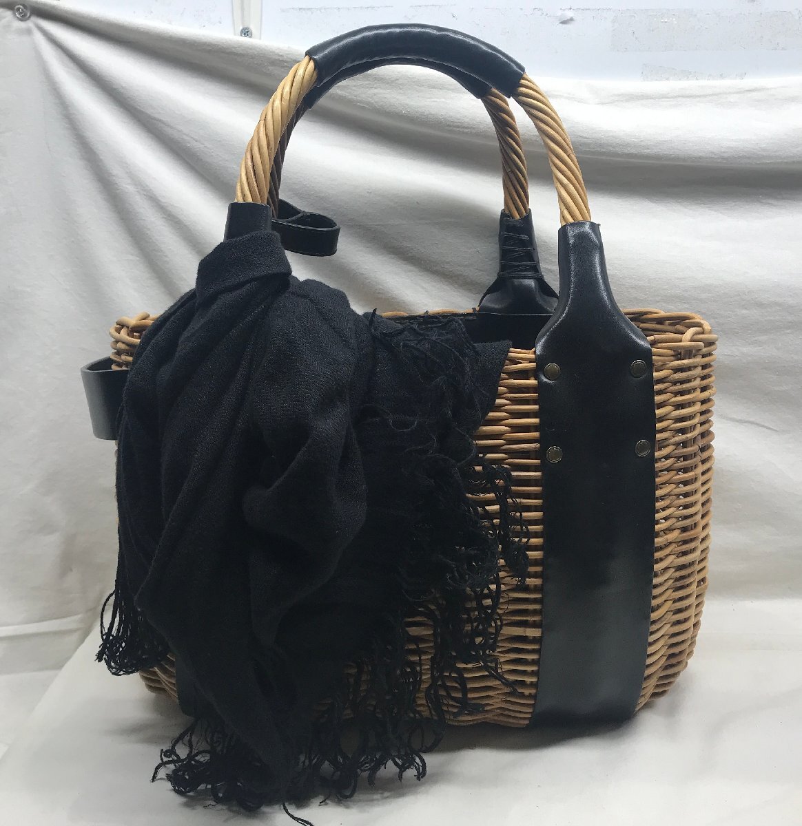 【USED】エバゴス eb.a.gos カゴバッグ 手提げ スカーフ付 中古品 縦約24cm 横約35cm マチ約16cm