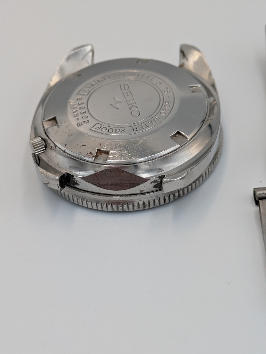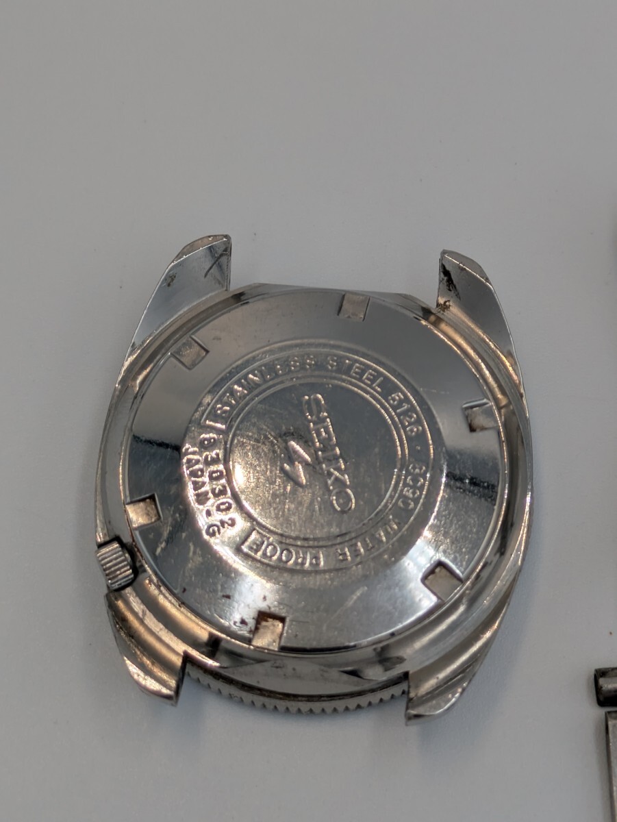 リューズは4時位置にあり、裏蓋には「STAINLESS STEEL 5126-8090 WATER PROOF JAPAN」の刻印があります。