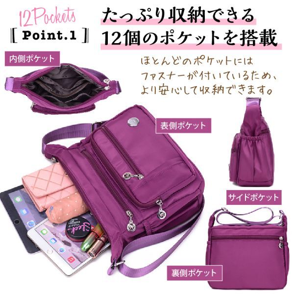 • ちょっとしたお出かけにぴったりのショルダーバッグ。 軽くてらくらく持ち歩ける上、12個もの豊富なポケットがついており、ビジュアルだけでなく機能性にも優れています。