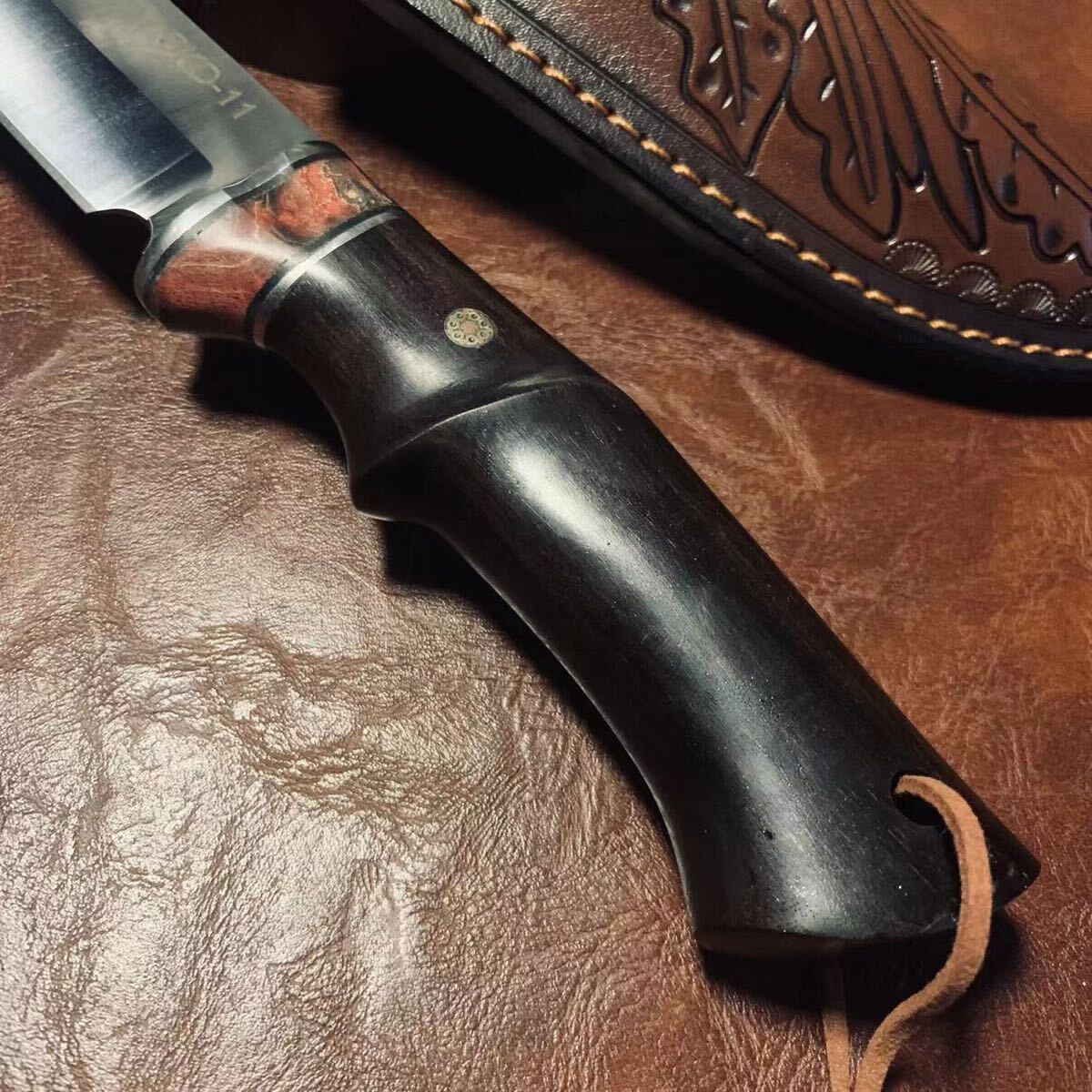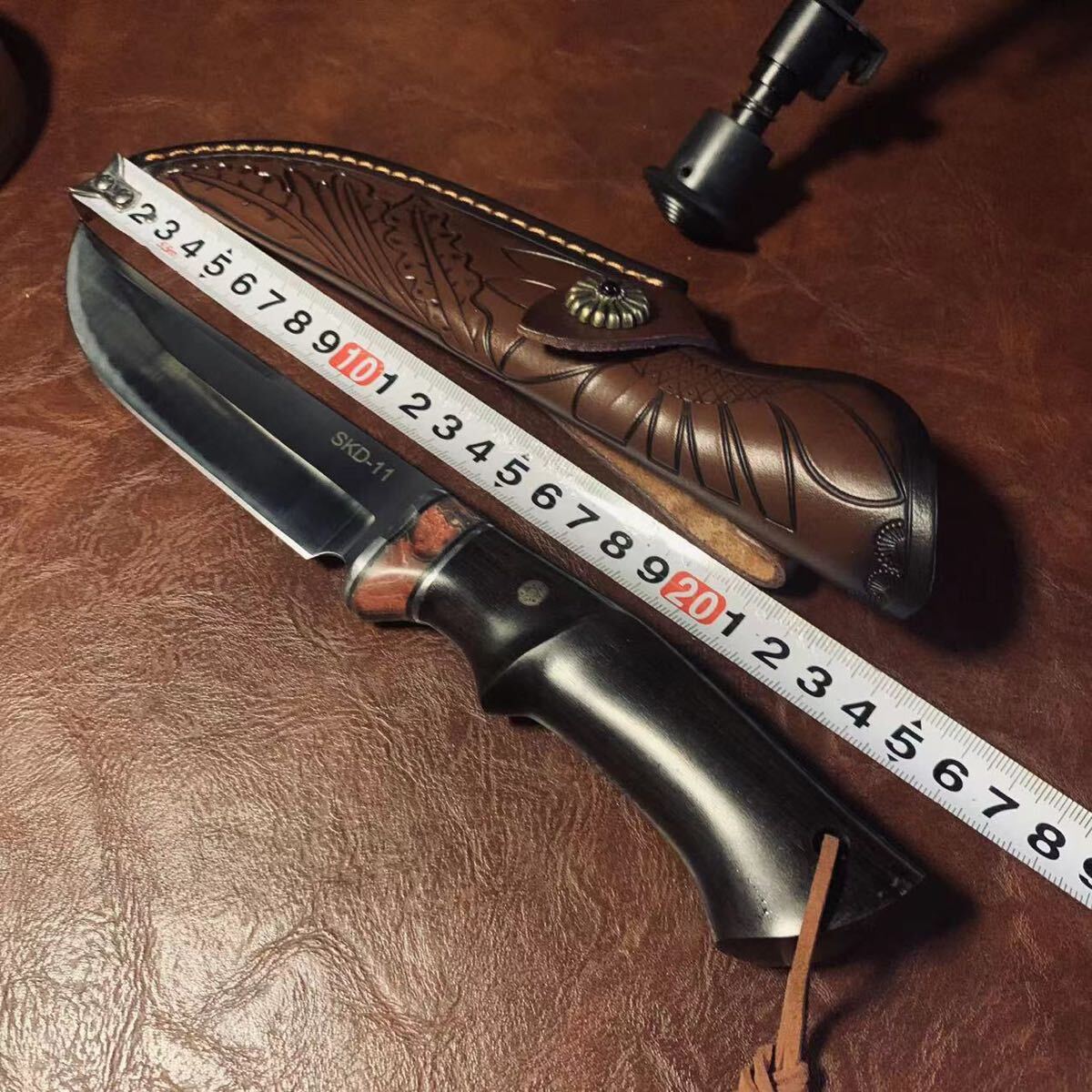 刃厚5mm 超高品質 アウトドアナイフ 包丁 SKD11鋼製 薪割り 革製シース付き キャンプ 釣り ハイキング 野外登山