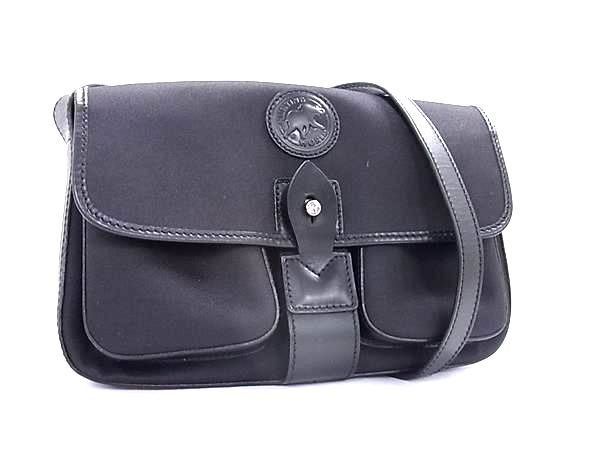 1円 ■美品■ HUNTING WORLD ハンティングワールド キャンバス×レザー クロスボディ ショルダーバッグ メンズ ブラック系 FR4652