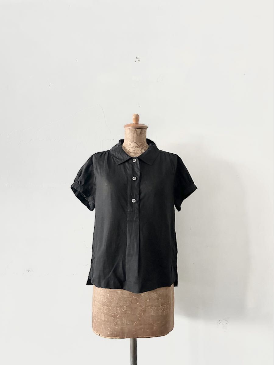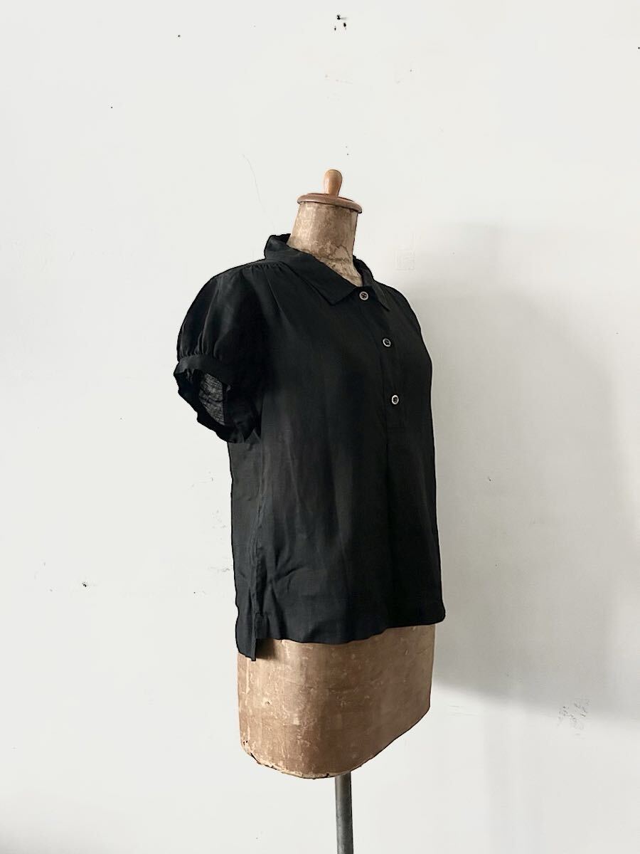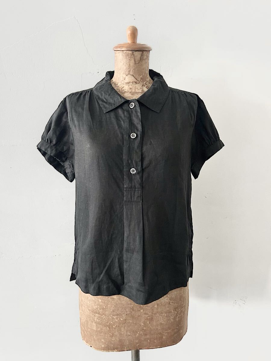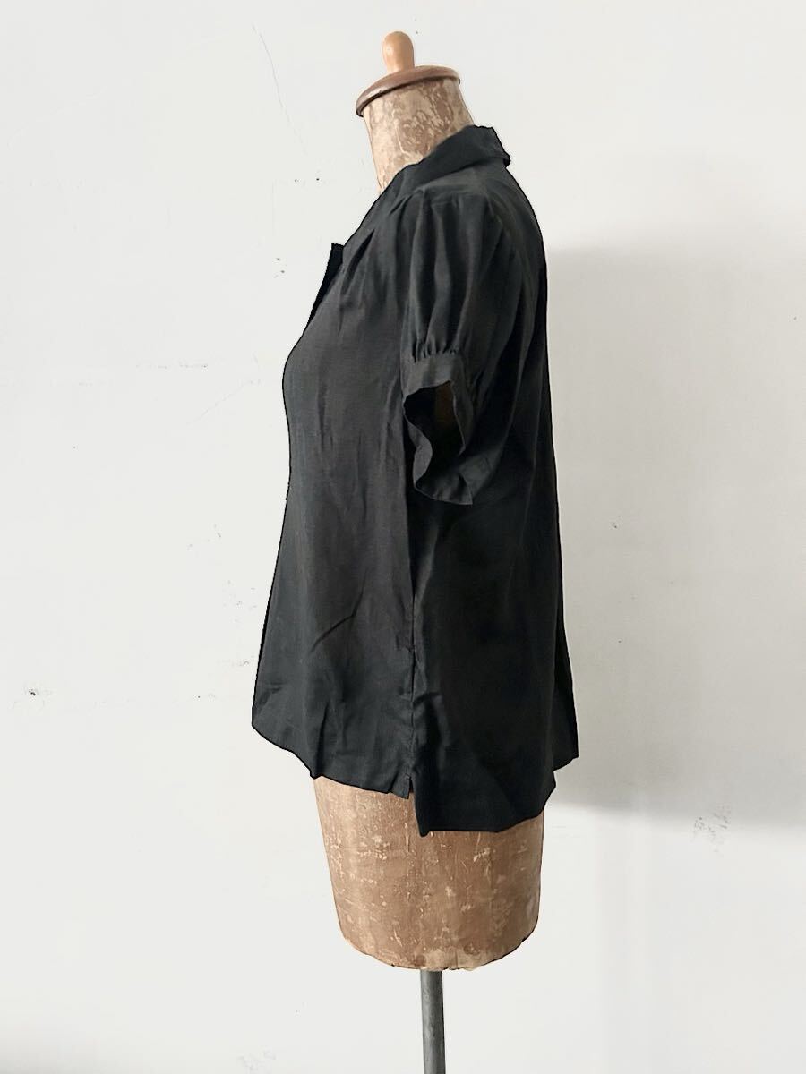 カラーは黒でリネン素材の半袖ブラウスです。