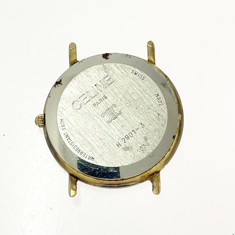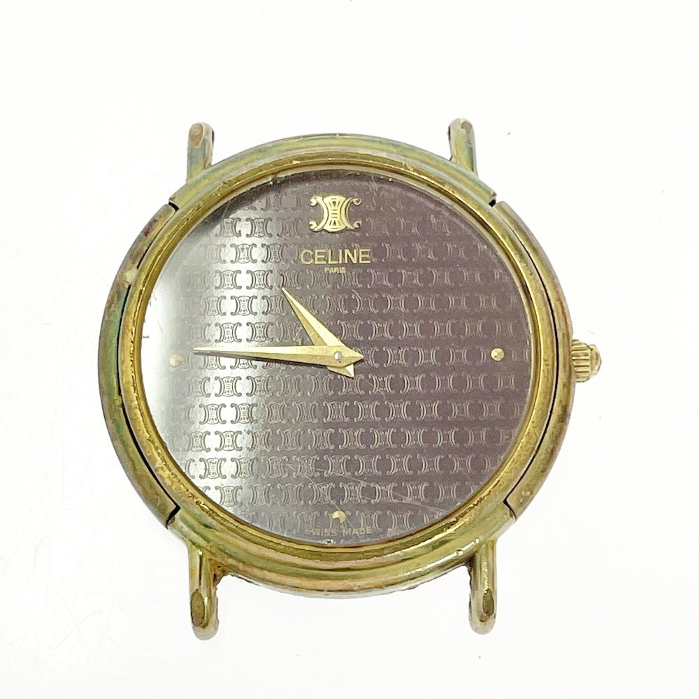 【1円スタート】CELINE セリーヌ H2901-3 ラウンド GP×SS ボルドー系文字盤 クオーツ ボーイズ腕時計 ジャンク 490804