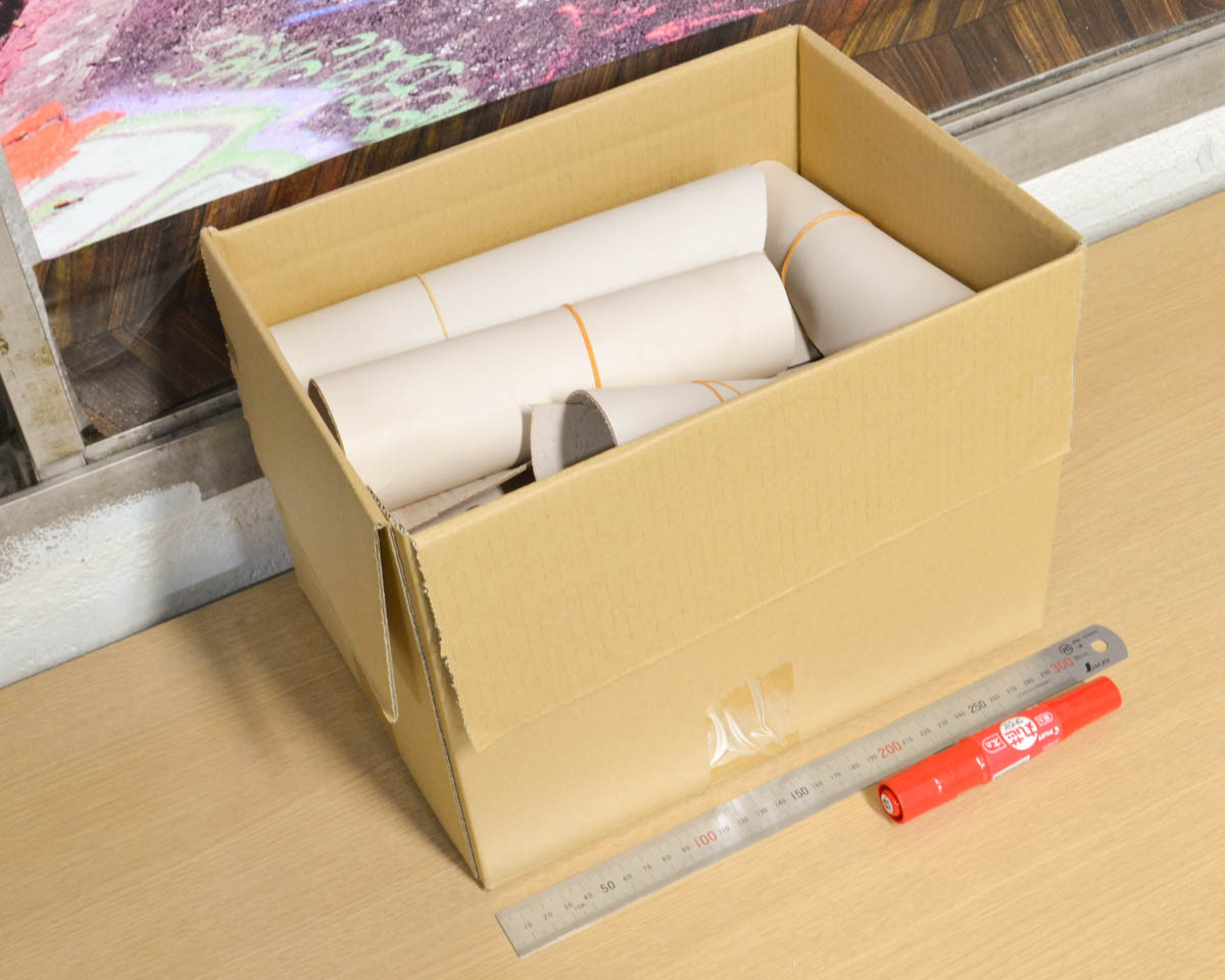 およそはがき大からA3用紙大までランダムに、厚さ1.5~2.2mm前後のハギレを約0.9㎏(箱を含む)まで入れたセットです。