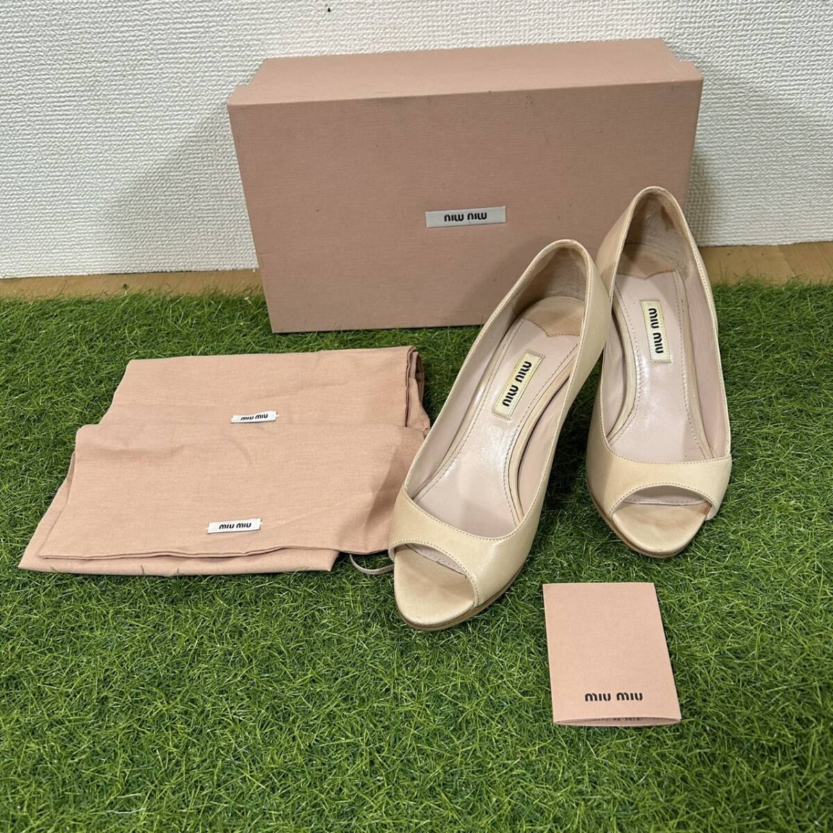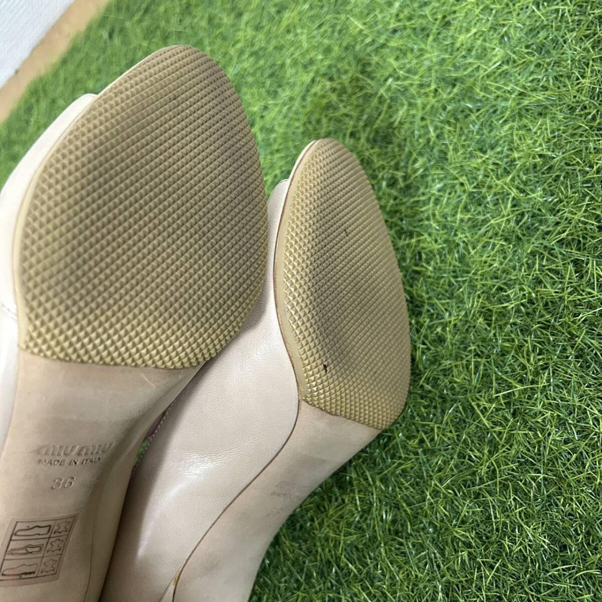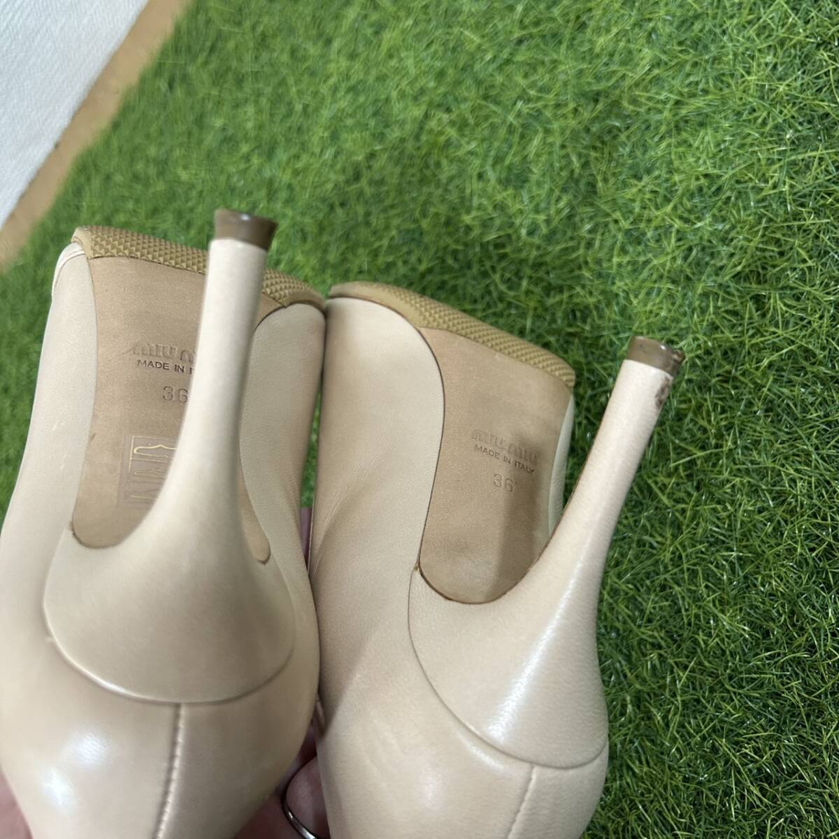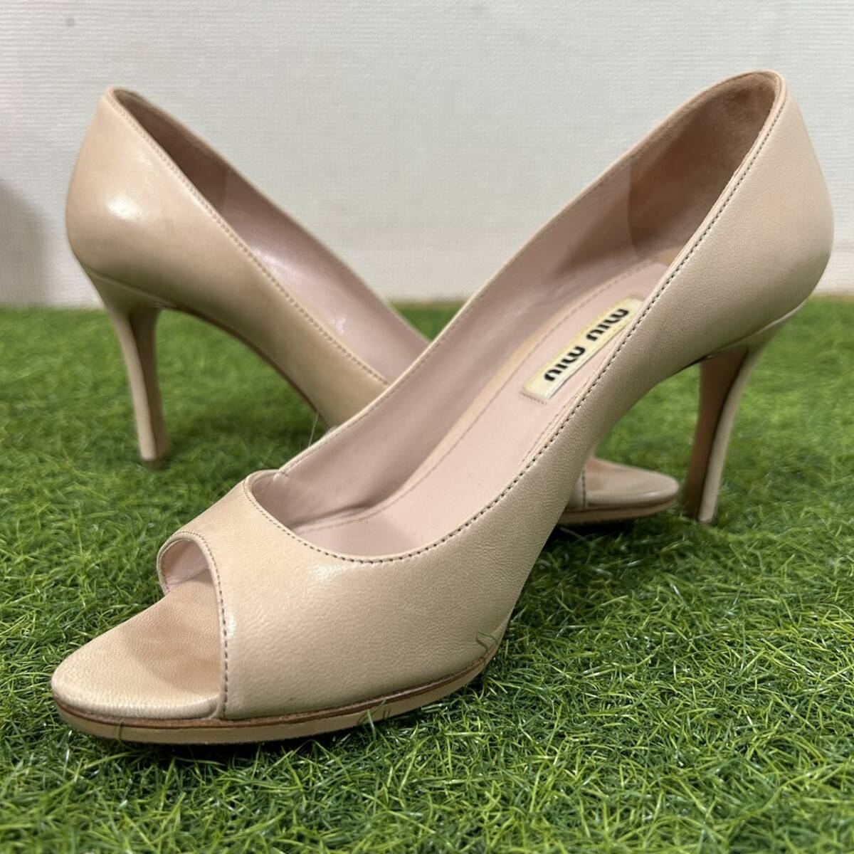 miumiu オープントゥパンプス サイズ:36 (約23cm) ミュウミュウ ピンクベージュ ハイヒール レディースファッション ハイブランド 婦人靴