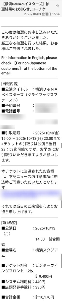クライマックスファイナルシリーズを掛けての大事な一戦となりますプラチナチケットになるか!?はたまた払い戻しになるか!?