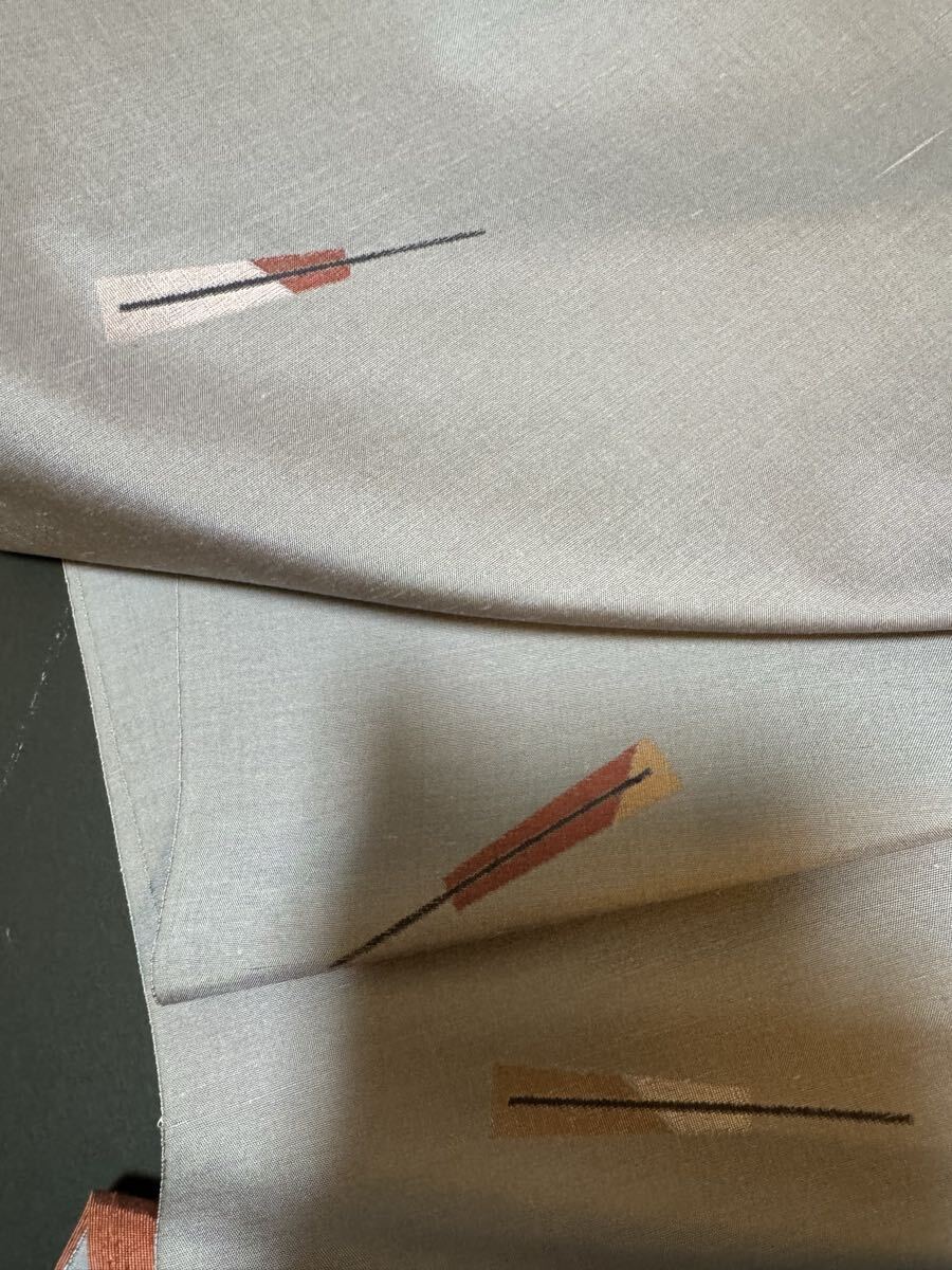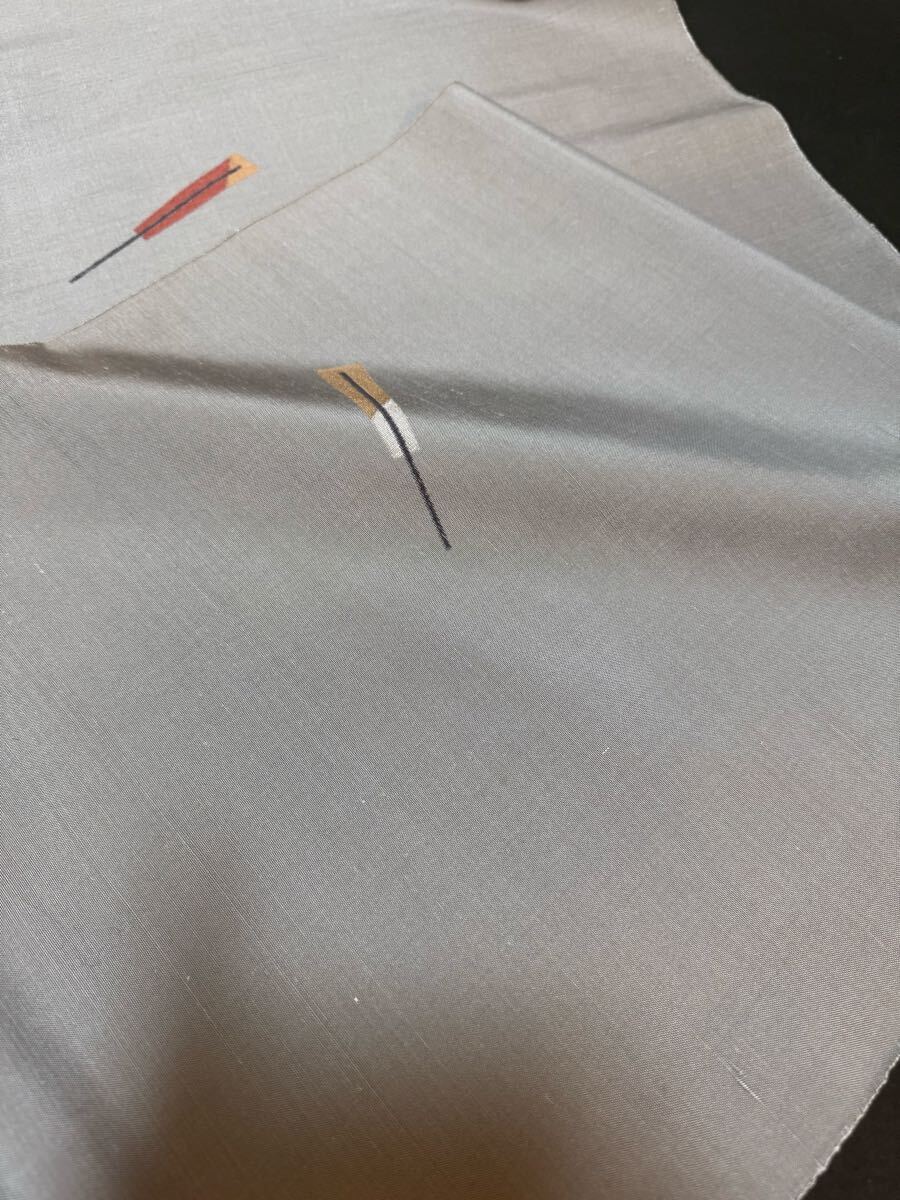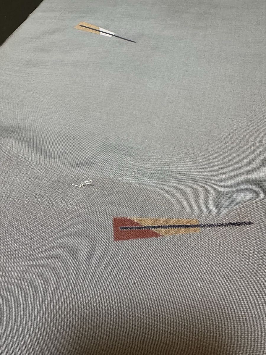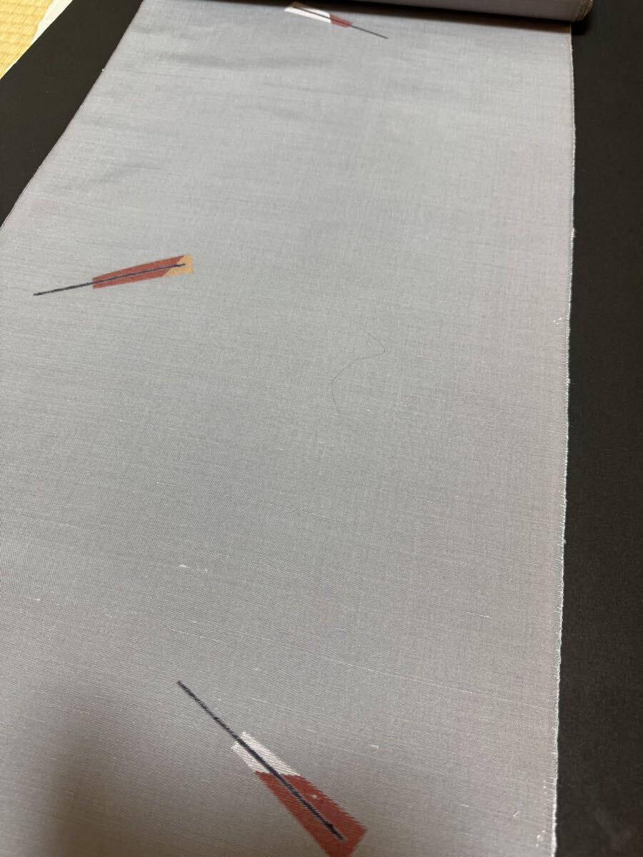 「風通御召織」グレー色 手織り有杼織「舞扇文様」飛び柄文様 着尺 反物の