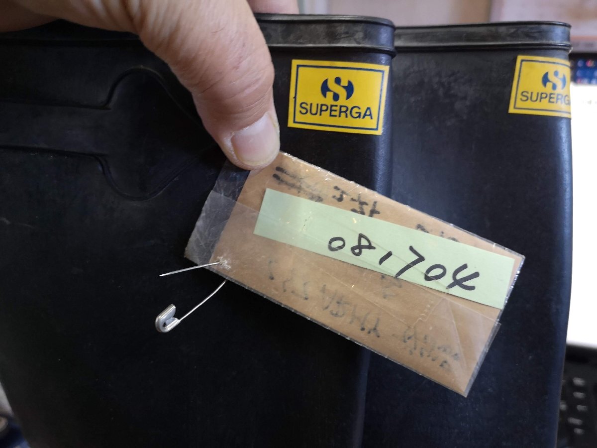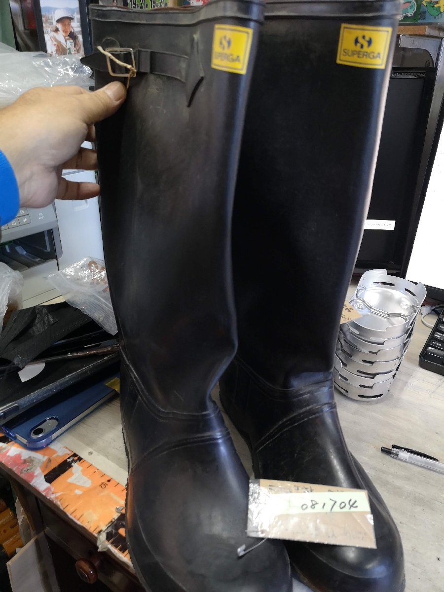 イタリア軍にて採用されていたSUPERGA社製のデッキラバーブーツです。6枚目までの写真は流用です。 スペルガのマークはいろいろです、7枚目以降の写真が実物になります。 タウンユースとしてなどのレインブーツとしてはもちろん、フィッシングやガーデニング、アウトドアなシーンにもオススメです。 柔らかいゴム製の作りになっており、足に馴染みやすく可動性もよく、デザインもシンプルでファッションアイテムとしても活躍します。 ふくらはぎサイズはサイドのアジャスターで調整が可能です。 ●サイズ 42(26.5cm) / 44(27.5cm) ●素材:ラバー ●状態:デッドストック ※デッドストック(未使用品ですが長期にわたり倉庫にて保管されていた商品)の為、日焼け、色ブレなどあります。 予めご了承の上ご注文下さい。 沖縄離島を除く全国500円にて元払いいたします。落札価格にプラスでお願いいたします