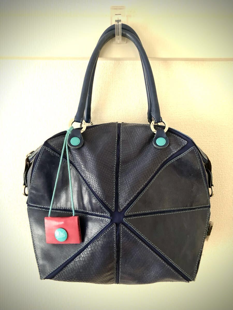 フィレンツェ路面店で購入したバッグ。形が幾通りにも変えられます。フラット→マチ付き、持ち手の変更・持ち手取付位置変更