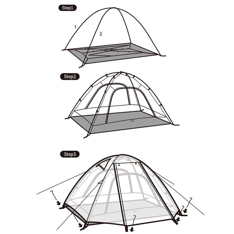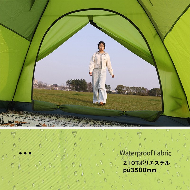 材質:アウターテント: 210Dポリエステル(PU3500)、インナーテント:B3ポリエステル通気性生地、ポール:アルミ合金