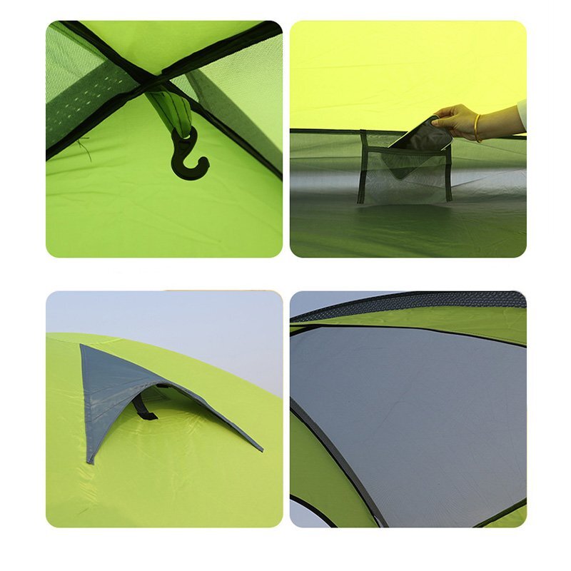 【耐久性&高い防風防雨性能】二層構造の設計で、優れた防水性能を備えていて、雨に強い。チェック柄210Tポリエステルを採用して、引裂きに強い。フロアは耐摩耗性に優れた190Tオックスフォードを使用しております。フライシートとフロアの縫い目には防水シームテープ加工されます、縫い目からの雨水侵入を防止。