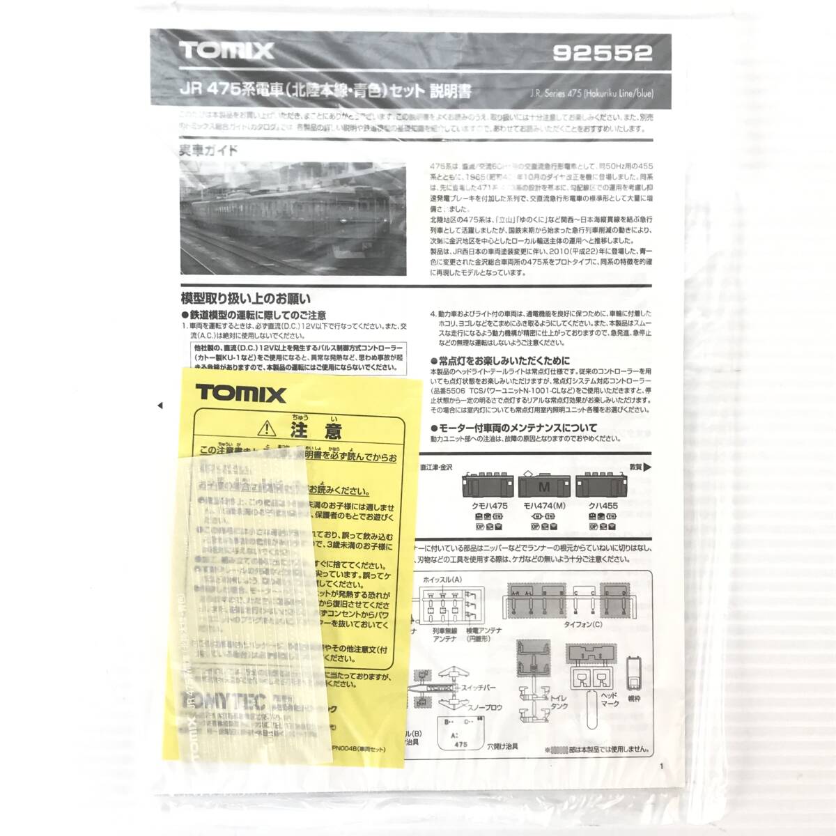 〇中古品〇 TOMIX トミックス 鉄道模型Nゲージ 1/150 JR 475系(北陸本線・青色) 3両セット [92552] 動作未確認 現状品