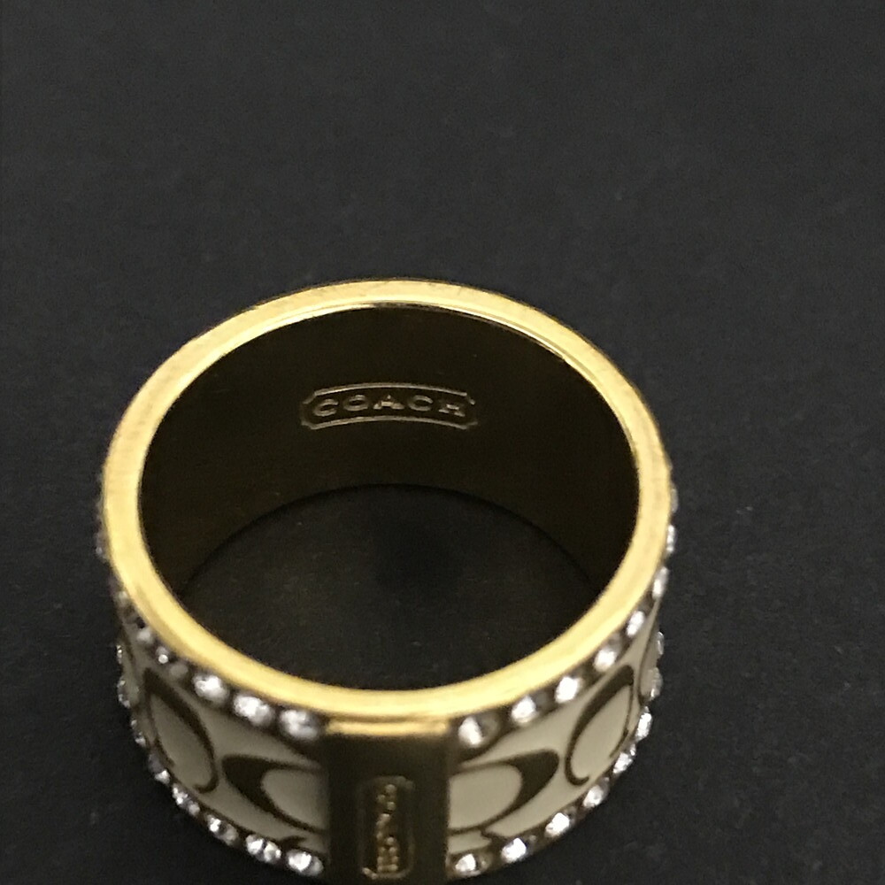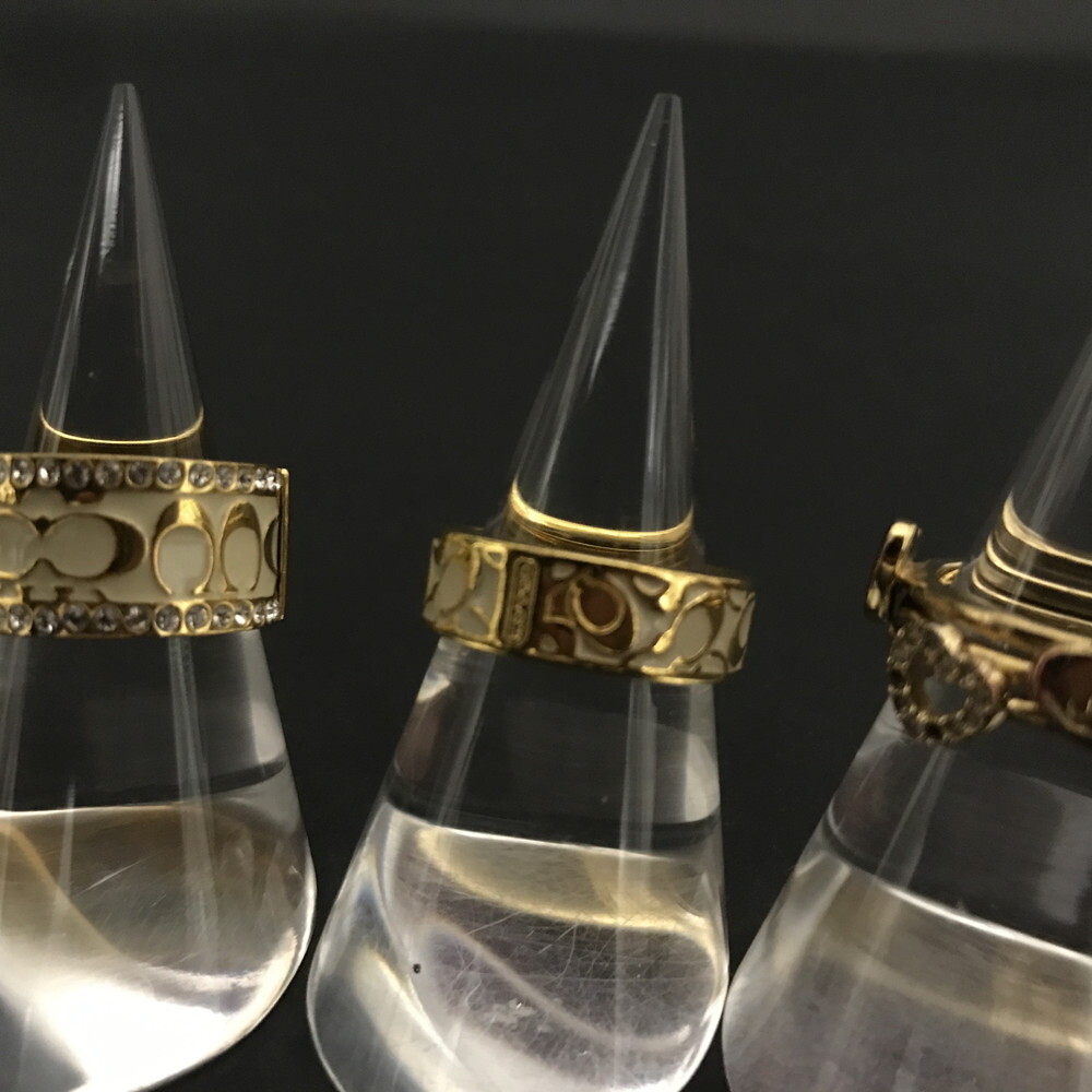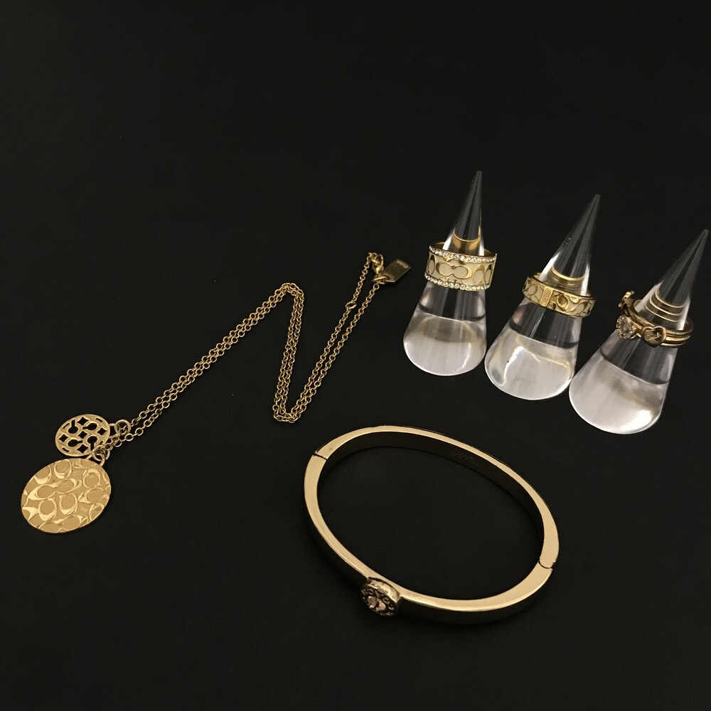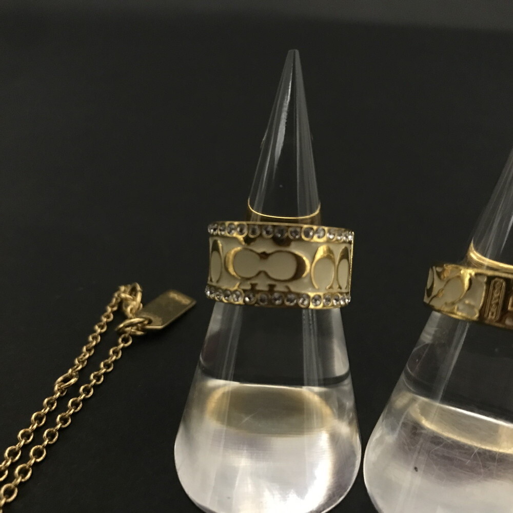 1円 美品 COACH コーチ シグネチャー ラインストーン リング バングル ネックレス レディース アクセサリー5点セット ブラウン /ZX1002