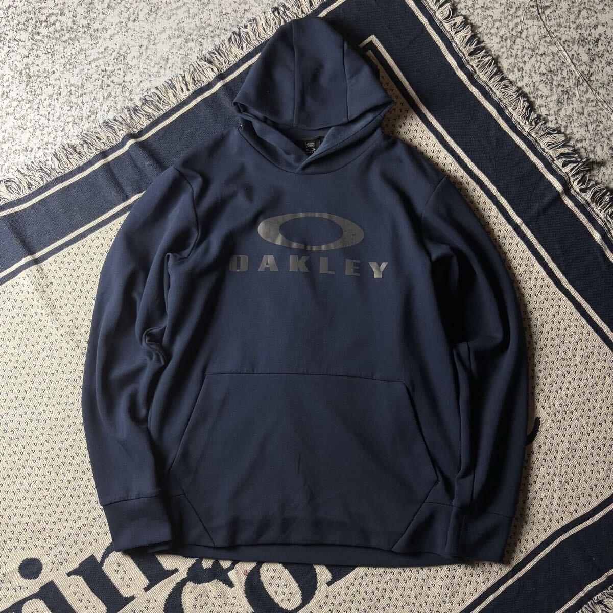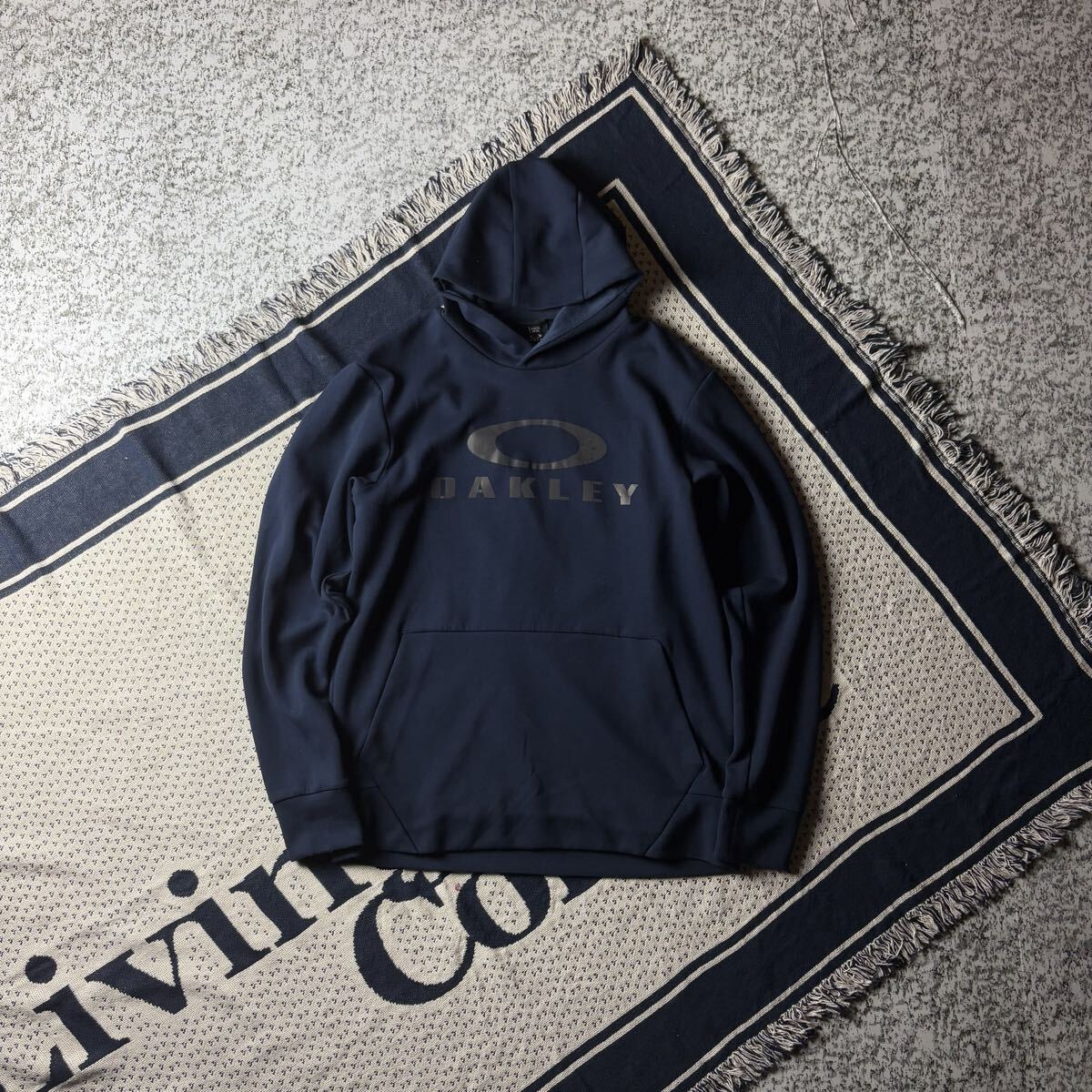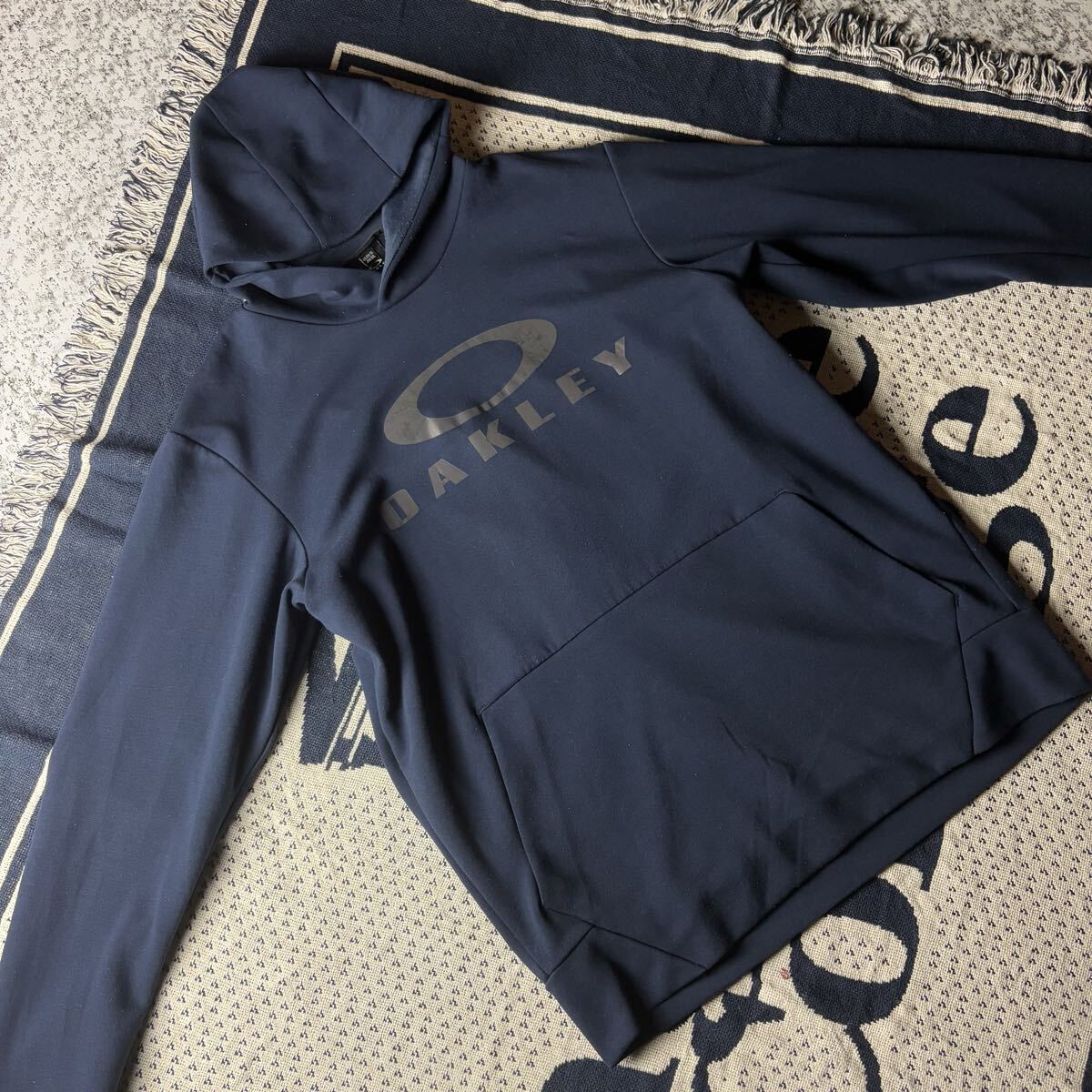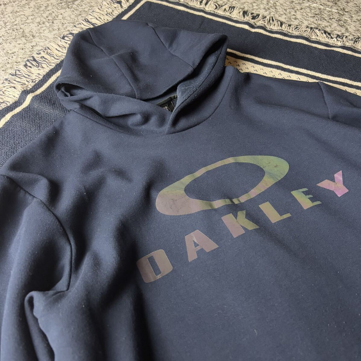 【グッドレギュラー】オークリー ビッグロゴ ジャージ素材 フーディー パーカー ネイビー 2XLサイズ 古着  OAKLEY