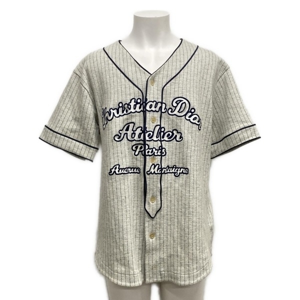 ディオール/クリスチャンディオール DIOR/ChristianDior 半袖シャツ サイズL 213J530A0663 - ウール、コットン ライトグレー×ネイビー